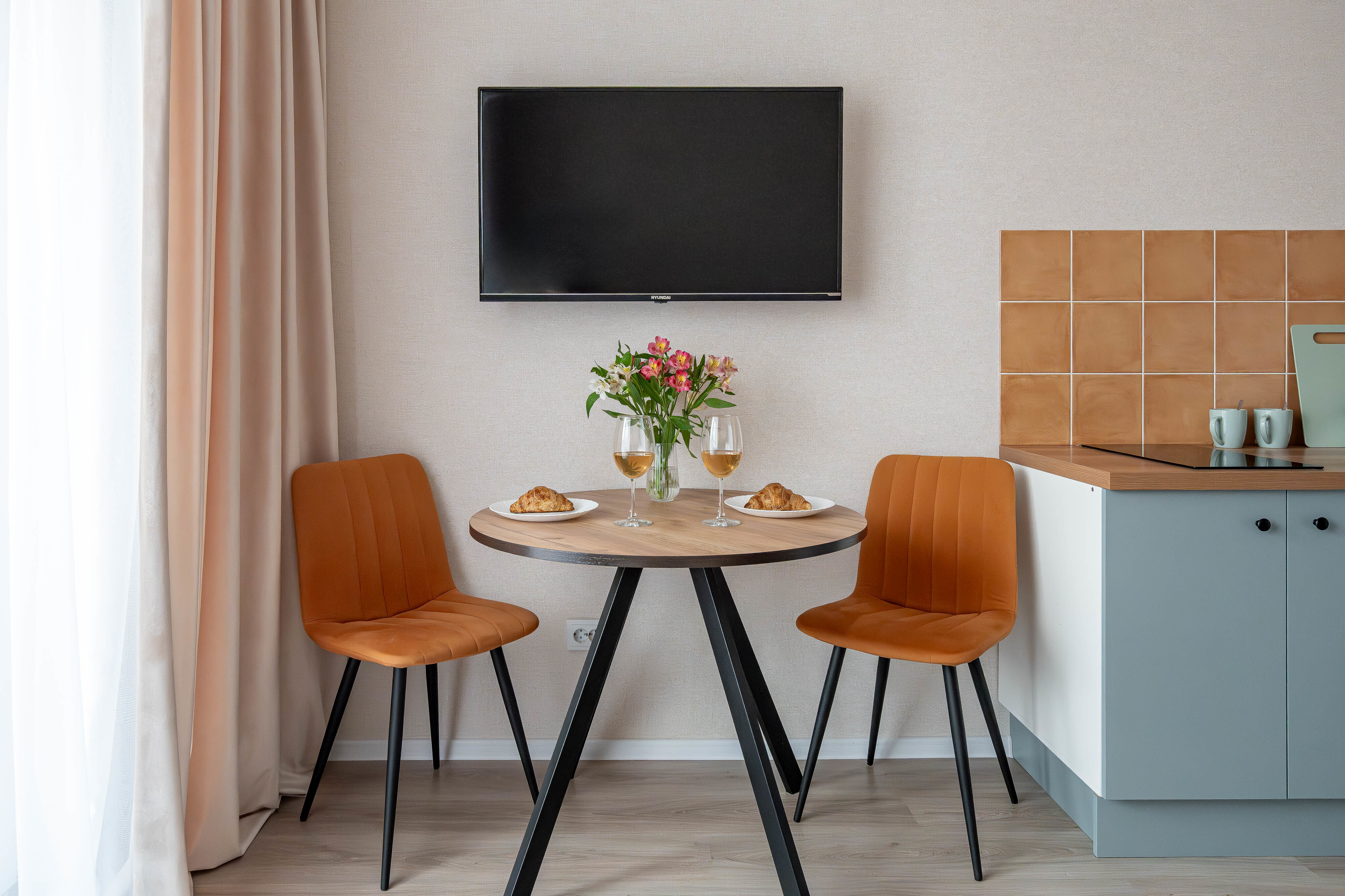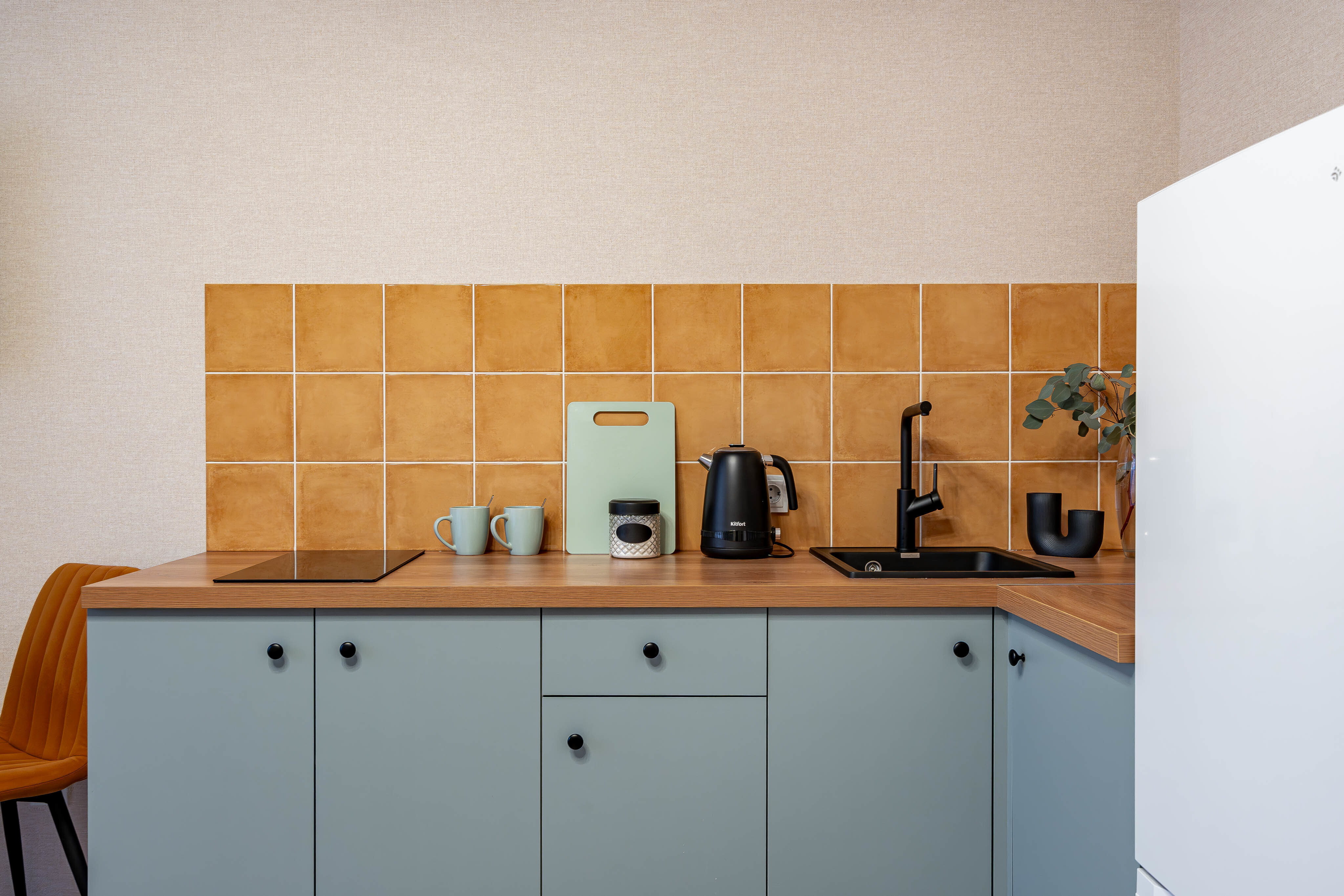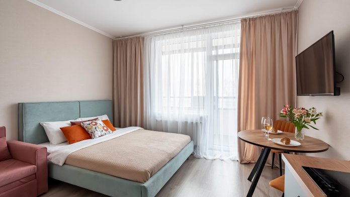 — Вся техника в вашем распоряжении: холодильник, стиральная машина, электрическая плита, СВЧ, телевизор со Smаrt ТV, чайник, пылесос, фен, роутер, утюг, сушилка и гладильная доска.