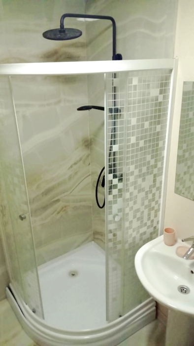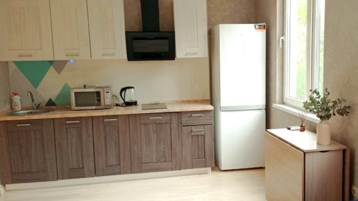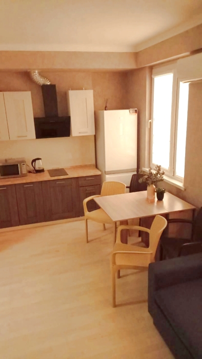 Квартира оборудована всем необходимым для комфортного проживания: обеденный стол и стулья; - шкаф для одежды, бесплатным Wi-Fi, телевизор с плоским экраном с кабельным телевидением, кондиционер, 2-спальная кровать и 2-спальный раскладной диван, сушилка для белья, гладильная доска, утюг. Постельное белье и полотенца предоставляются по количеству человек. Санузел совмещенный, оснащен зеркалом, унитазом, душевой, стиральной машиной, феном. Кухня оборудована индукционной плитой, вытяжкой, микроволновой печью, холодильником, электрическим чайником, всеми необходимыми кухонными приборами, сковородами, кастрюлями, посудой и столовыми приборами.