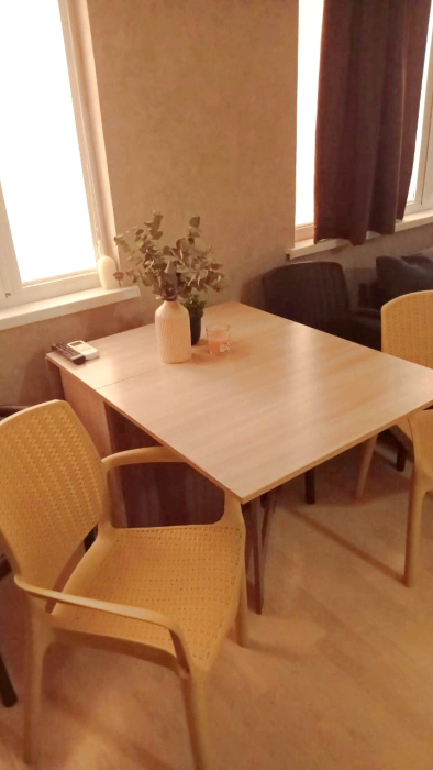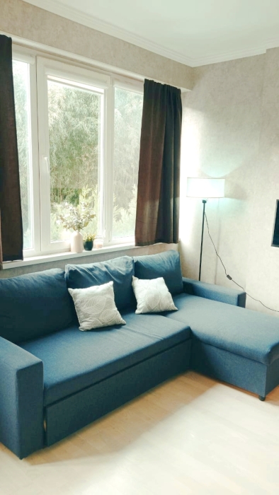 Квартира находятся на первом этаже и идеально подходят для размещения 3-4 гостей. Окна выходят в тихую зеленую зону, что обеспечивает спокойствие и умиротворение вдали от городской суеты.