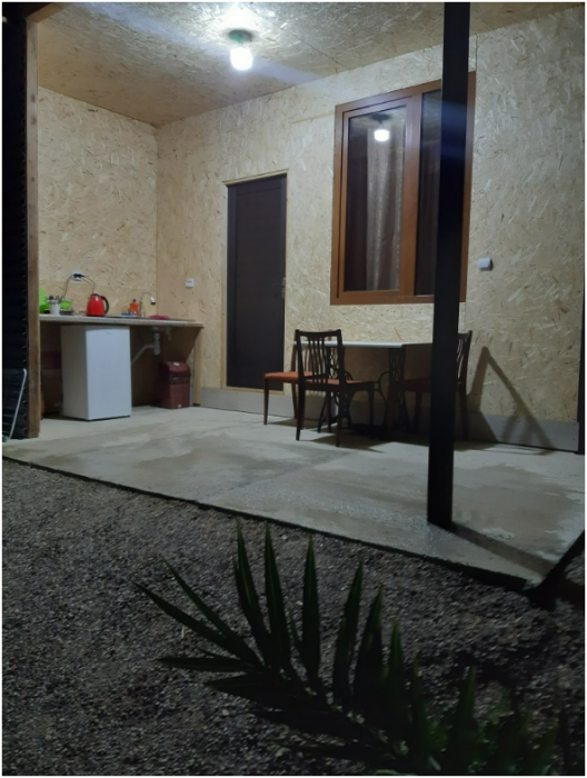 Отдельный домик со своей террасой и мини-кухней.