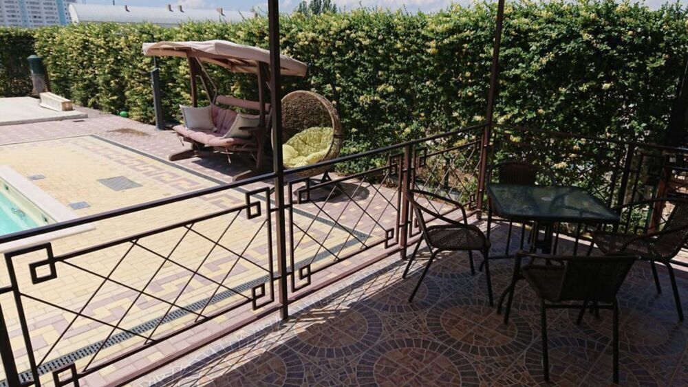 На территории гостевого дома есть общая кухня со всей необходимой техникой и посудой. К услугам гостей – открытый подогреваемый бассейн, летний душ, детская площадка, мангал, барбекю, парковка для машины под видеонаблюдением.
