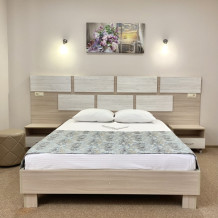 Мебель: двуспальная кровать, диван-кровать, кресло-кровать, шкаф, стулья, пуфики, прикроватные тумбочки, туалетный столик, журнальный столик, стол, прихожая, вешалка, зеркало.