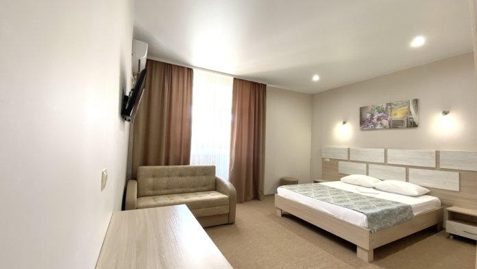Чтобы Ваш отдых прошёл удачно во всех отношениях, рекомендуем провести его в нашей мини-гостинице. Вас ждут комфортные номера и уютный дворик. К Вашим услугам беседки для отдыха, мангал, детская площадка, батут.