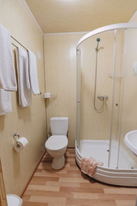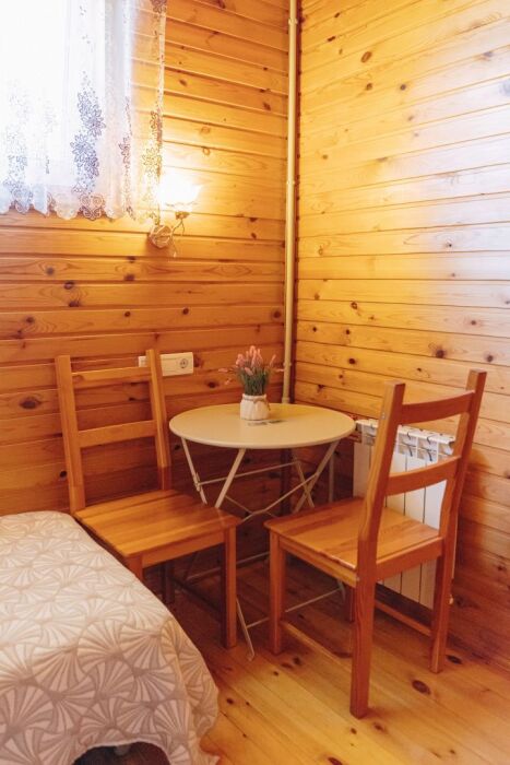 Гостевой дом включает 14 комфортабельных 2-местных комнат отделанных деревом. В каждой комнате: санузел, душ, регулируемое отопление, Wi-Fi - интернет.