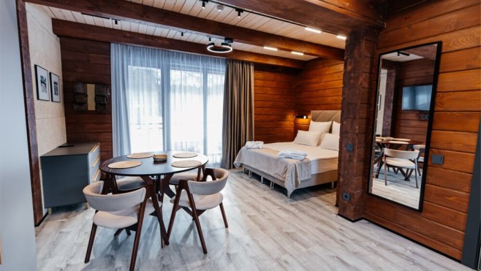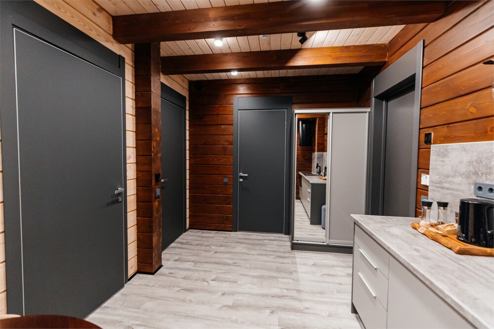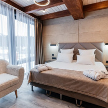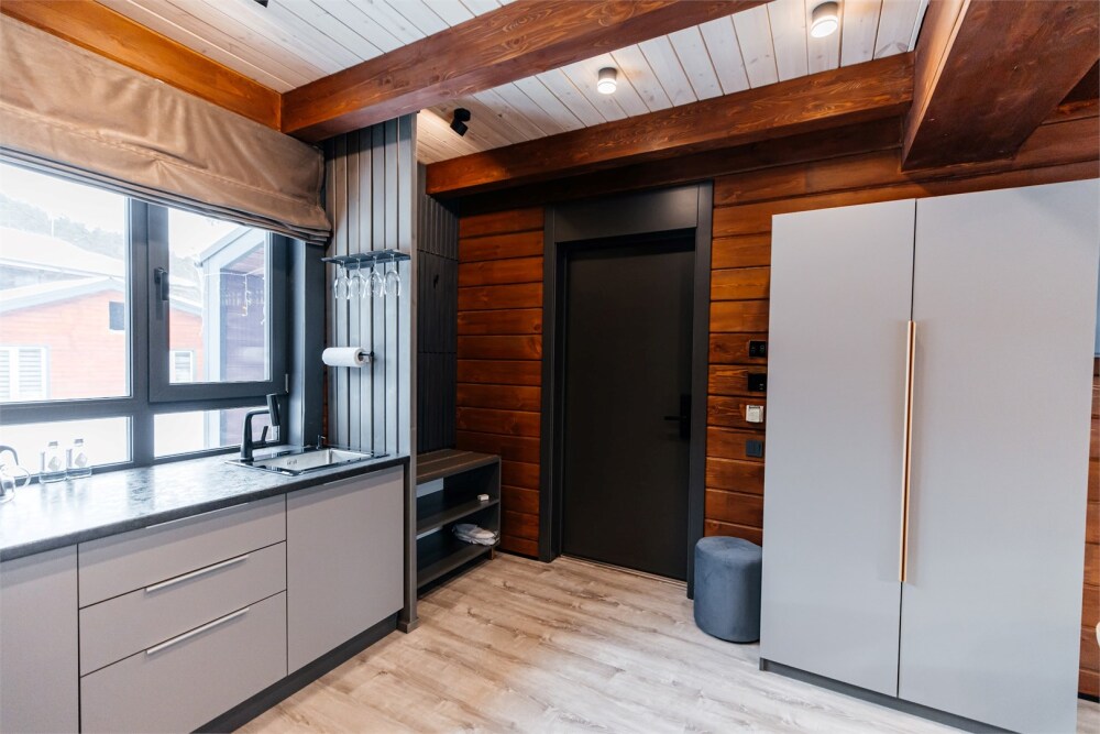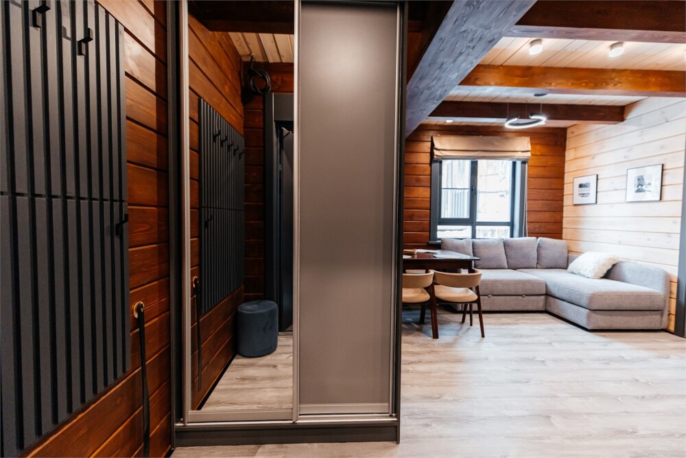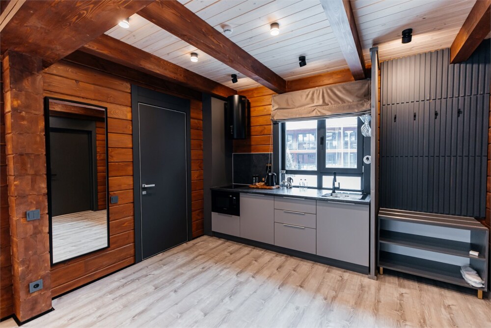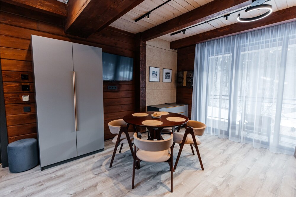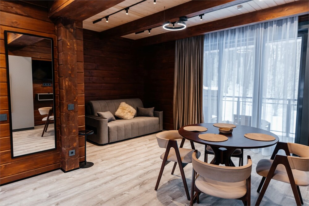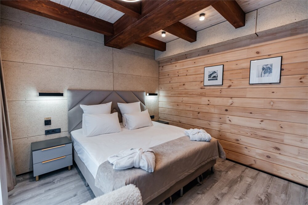 Номерной фонд отеля 16 номеров. К услугам гостей 1-, 2- и 3-комнатные апартаменты, которые станут идеальным местом для семейного отдыха, романтических путешествий и дружных компаний. Каждый из домов оснащен мебелью, изготовленной на заказ, что создает особый уют и атмосферу. Панорамные греющие окна Thermo Glass, созданные по инновационной технологии, обеспечат тепло даже в самые суровые морозы. Для комфортного семейного отдыха у нас предусмотрены все условия: хорошая шумоизоляция из экологичных материалов Green Board, а также возможность установить детскую кроватку по запросу.