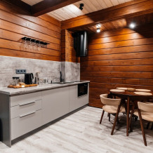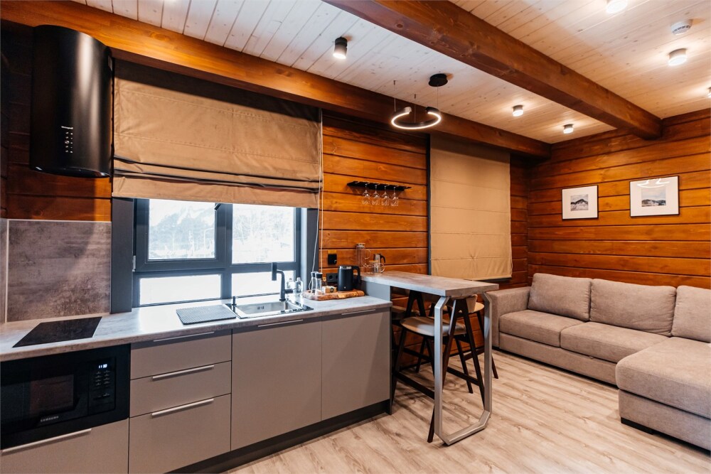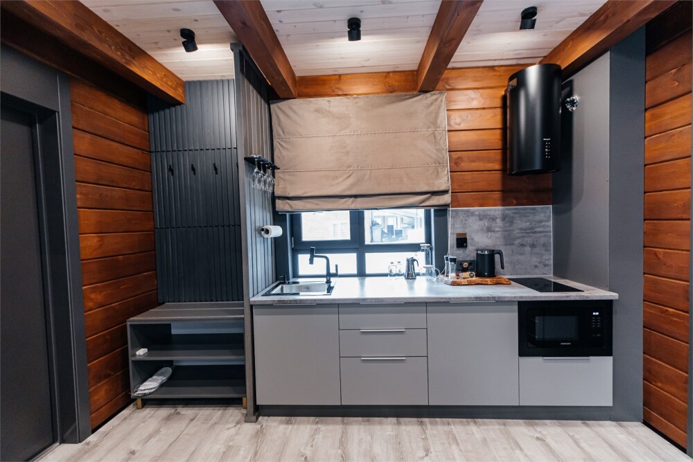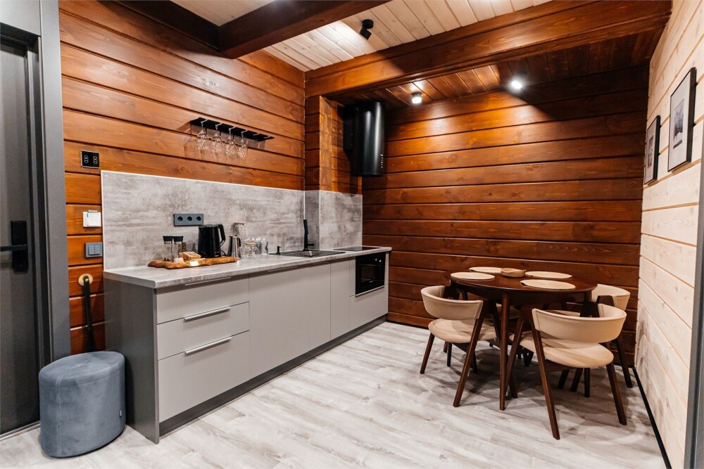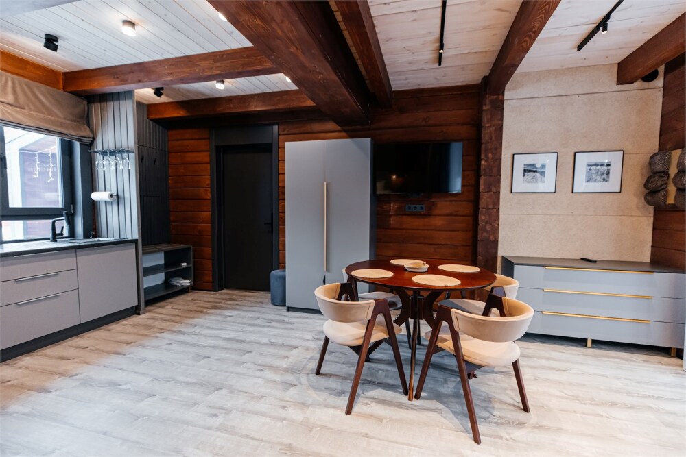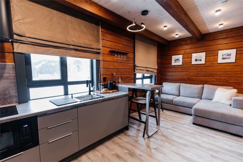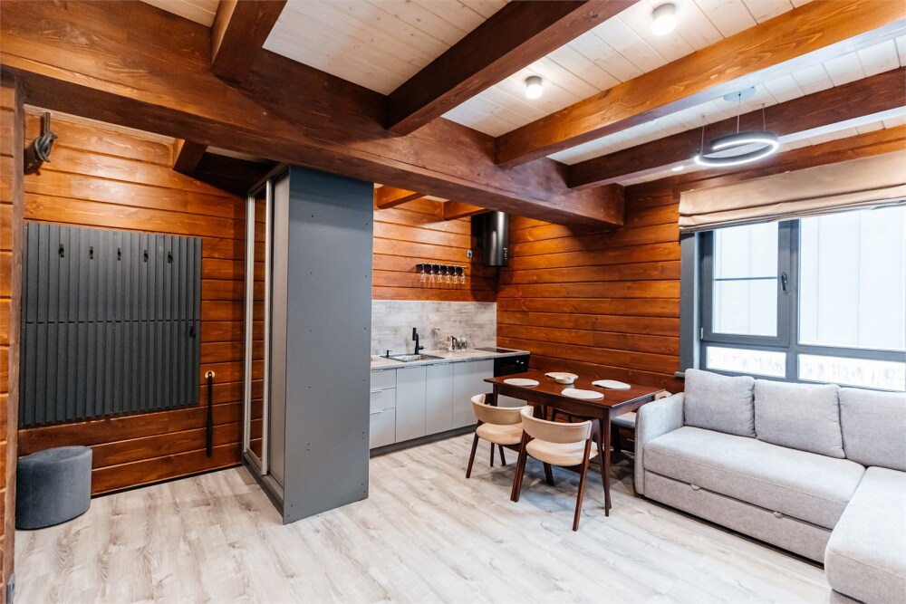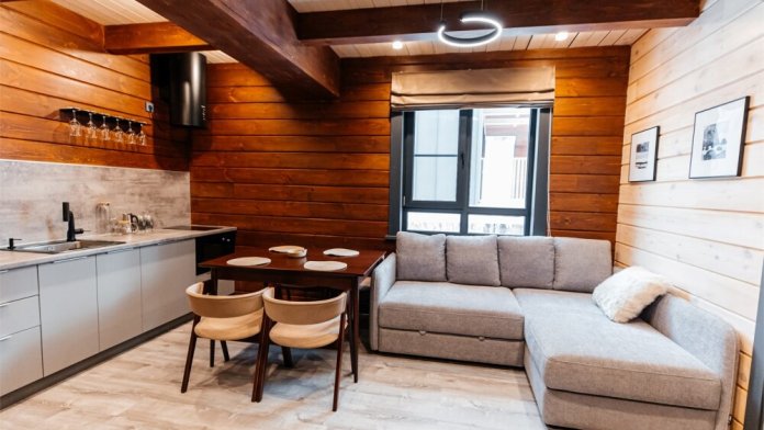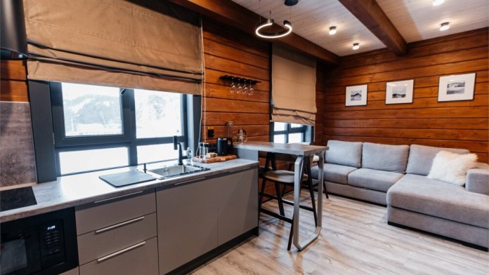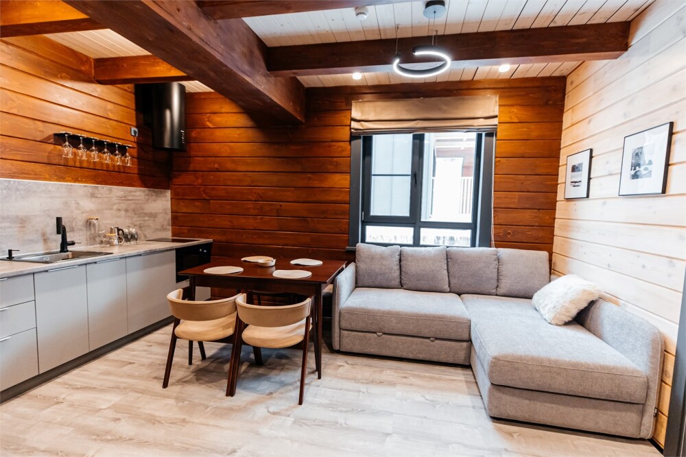 Номерной фонд отеля 16 номеров. К услугам гостей 1-, 2- и 3-комнатные апартаменты, которые станут идеальным местом для семейного отдыха, романтических путешествий и дружных компаний. Каждый из домов оснащен мебелью, изготовленной на заказ, что создает особый уют и атмосферу. Панорамные греющие окна Thermo Glass, созданные по инновационной технологии, обеспечат тепло даже в самые суровые морозы. Для комфортного семейного отдыха у нас предусмотрены все условия: хорошая шумоизоляция из экологичных материалов Green Board, а также возможность установить детскую кроватку по запросу.