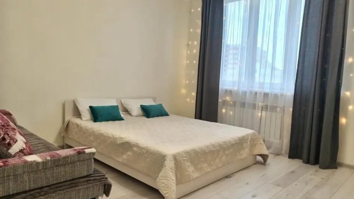 Просторная квартира с евро ремонтом, с двуспальной кроватью, с небольшим раскладным диваном, wi-fi, где прекрасно могут разместиться семья из 4-х человек, или компания из 4-х человек. В ванной комнате Вы всегда найдете свежие полотенца, фен, и необходимые предметы гигиены. В комнате есть телевизор с кабельным телевидением, чистое постельное белье. На кухне есть все для того что бы приготовить обед или ужин, чай и кофе для Вашего удовольствия и вся необходимая посуда так же в Вашем распоряжении. Окна в квартире выходят во двор, поэтому Вы не услышите гул машин по ночам. Шикарный вид с балкона 9-го этажа
