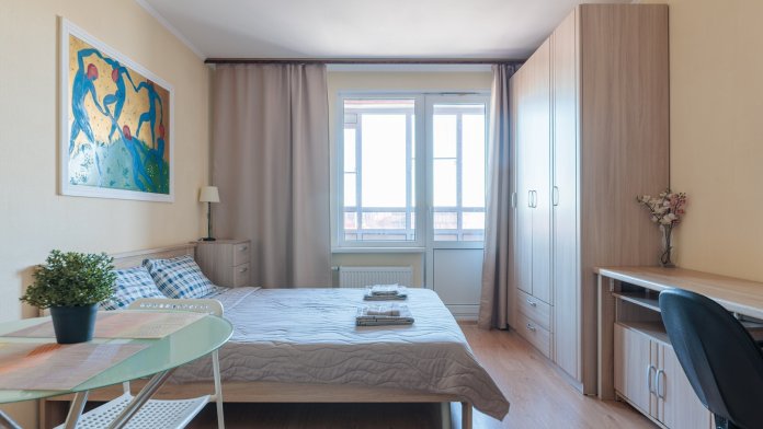 В квартире сделан хороший ремонт, удобная двуспальная кровать и финская раскладушка.