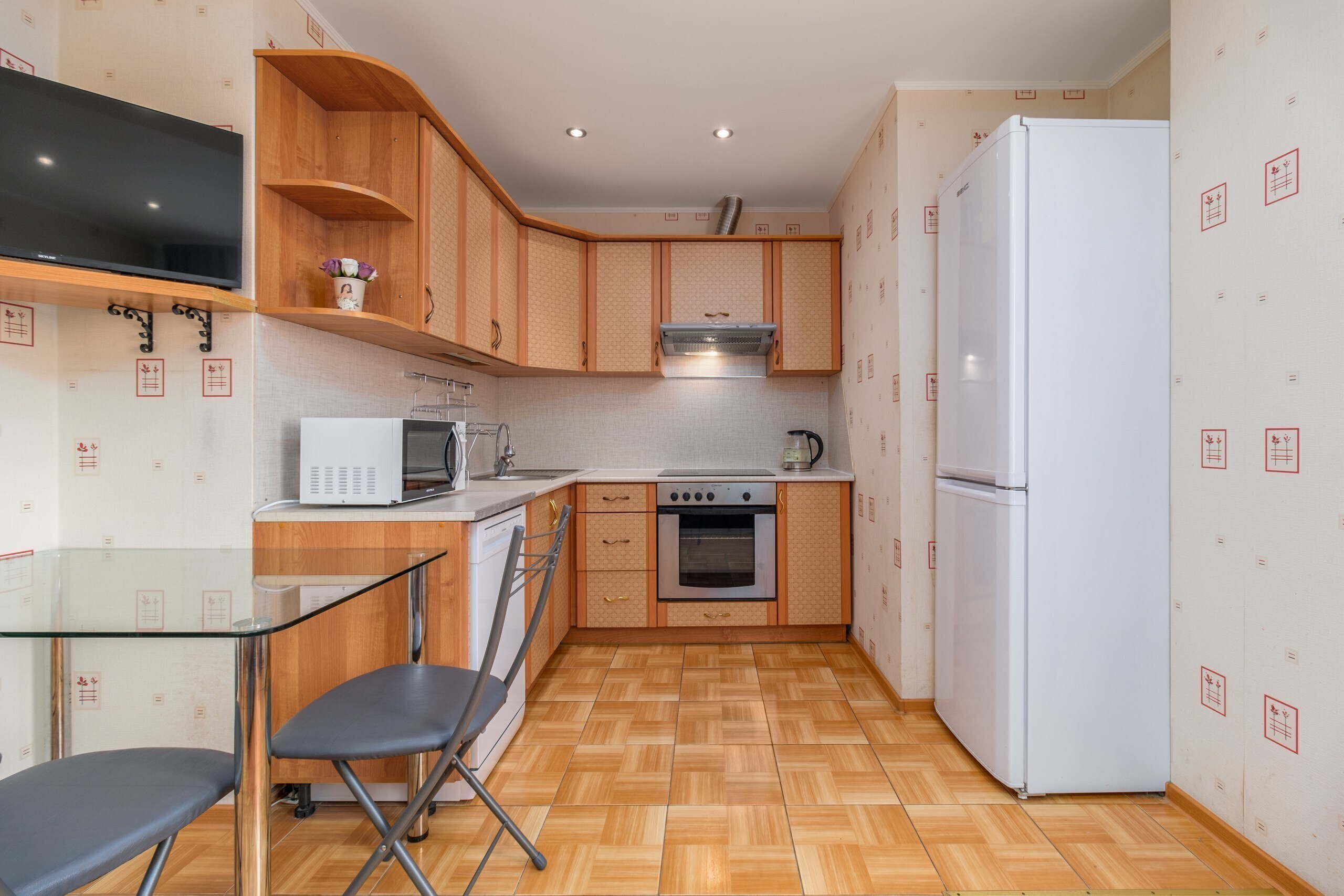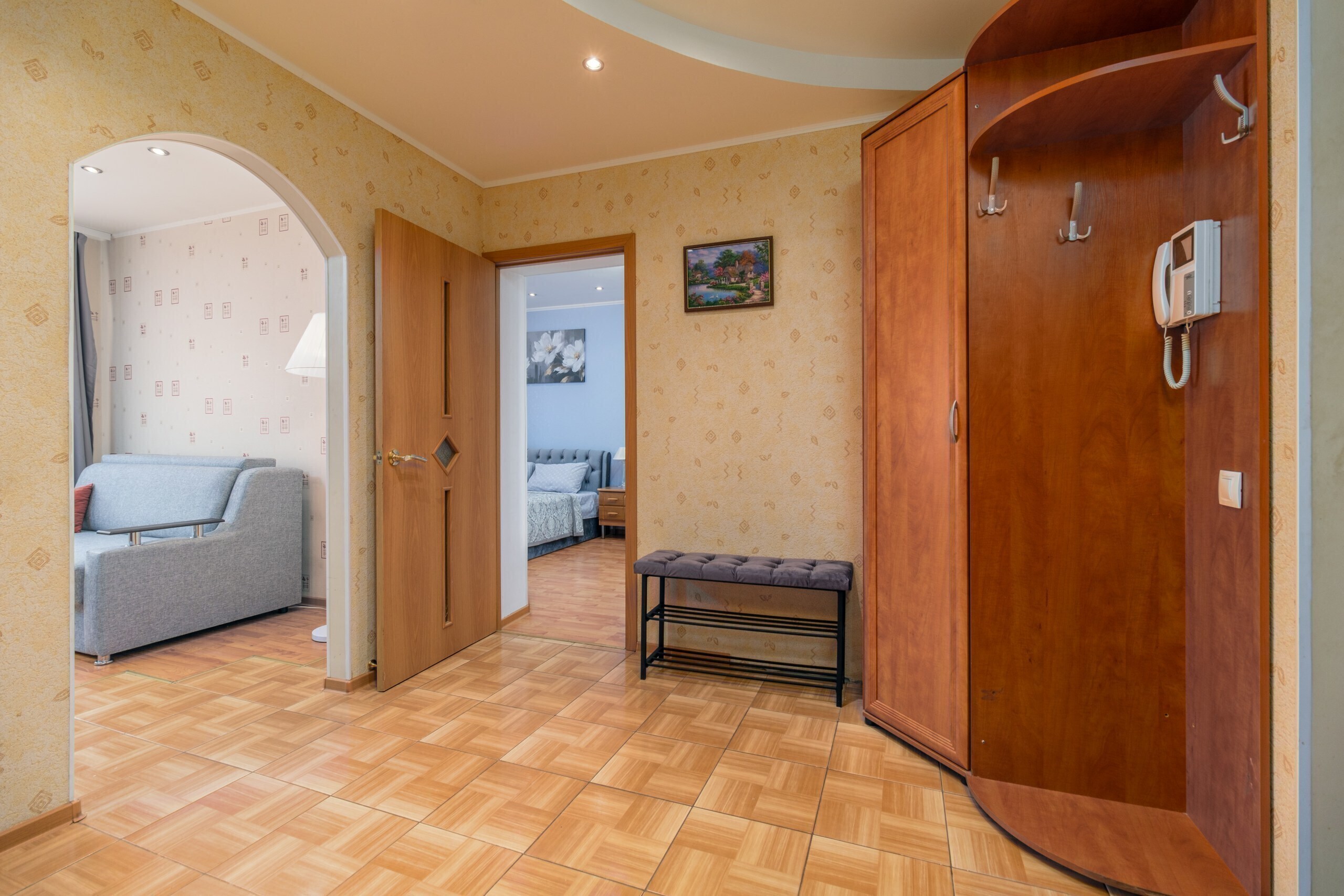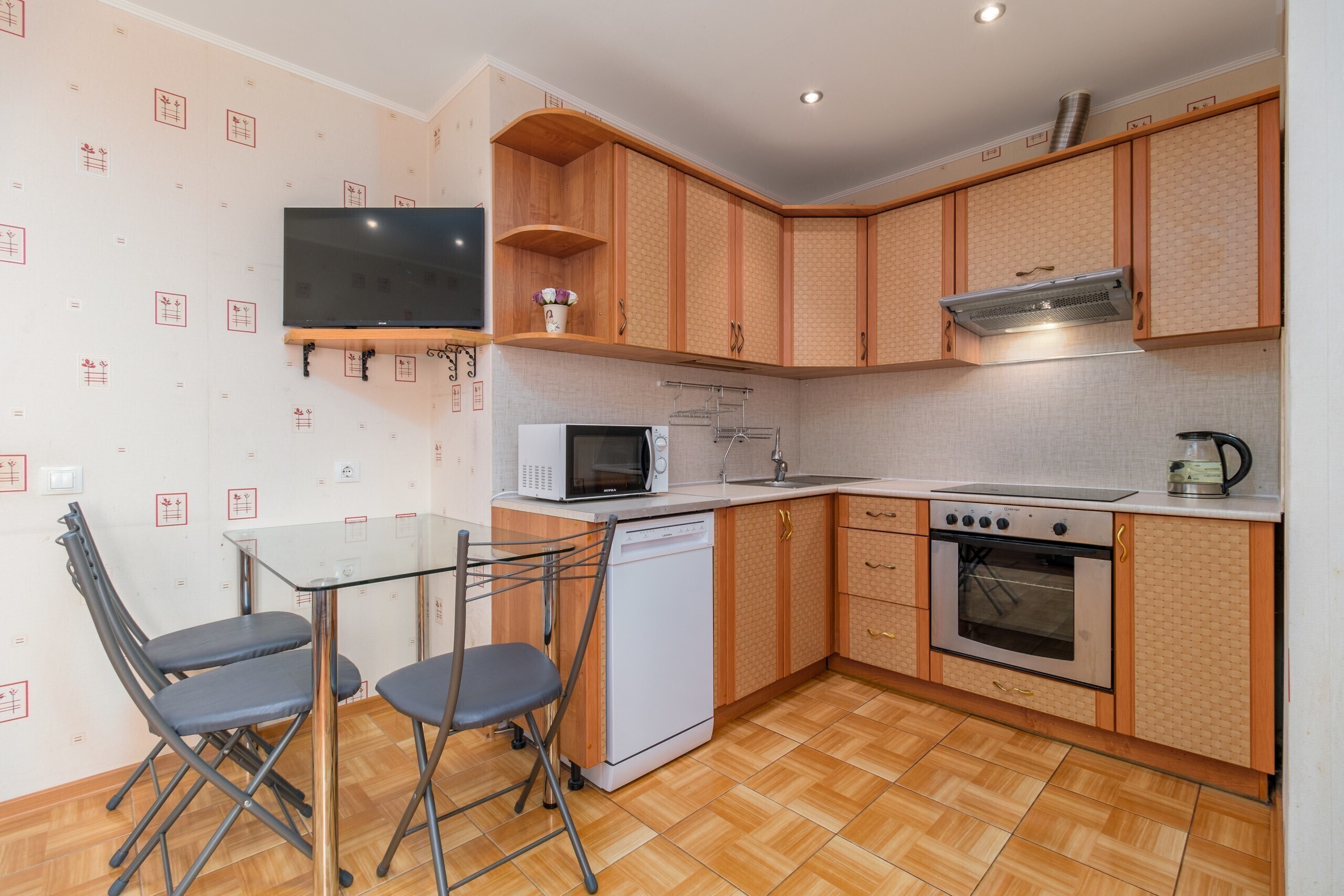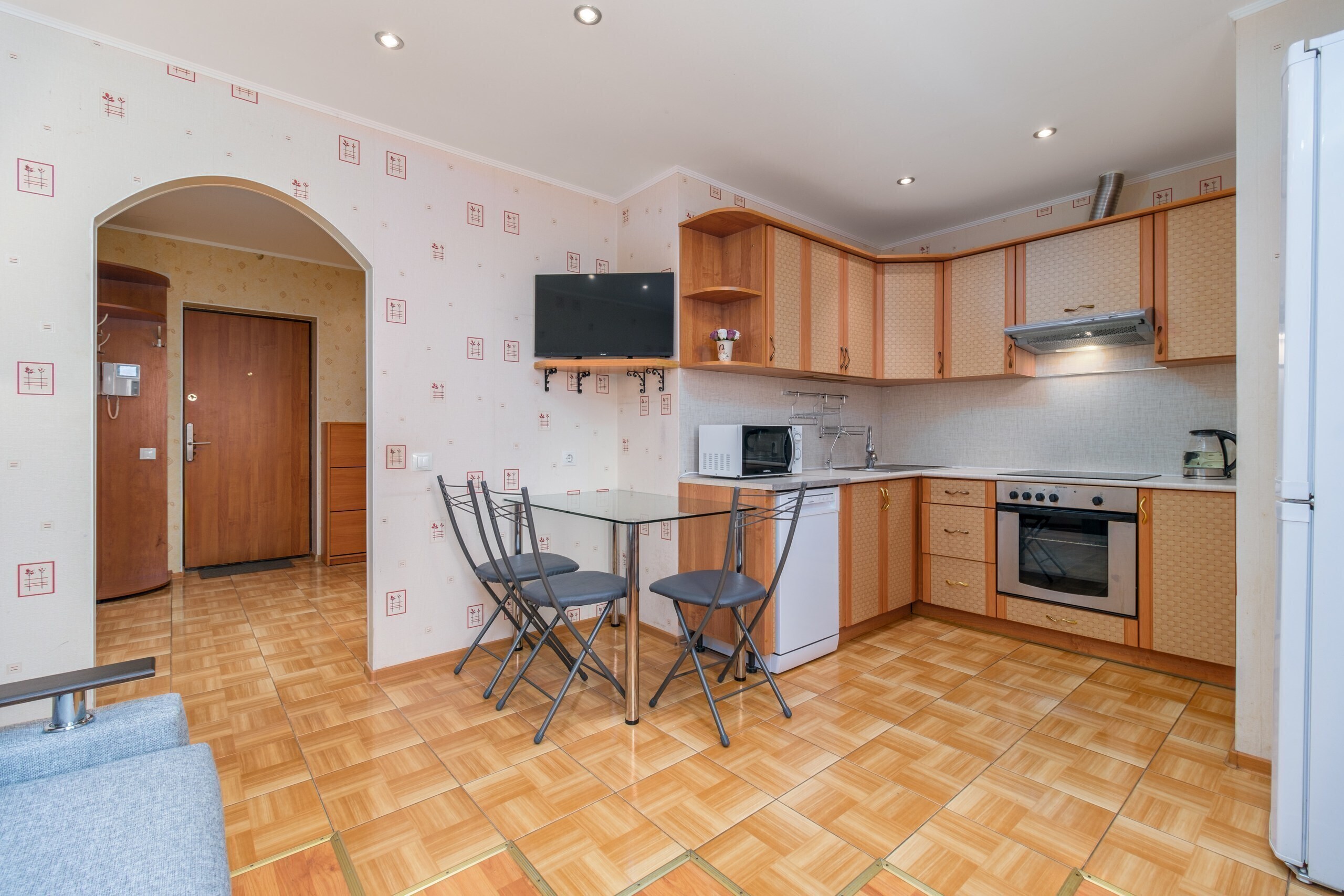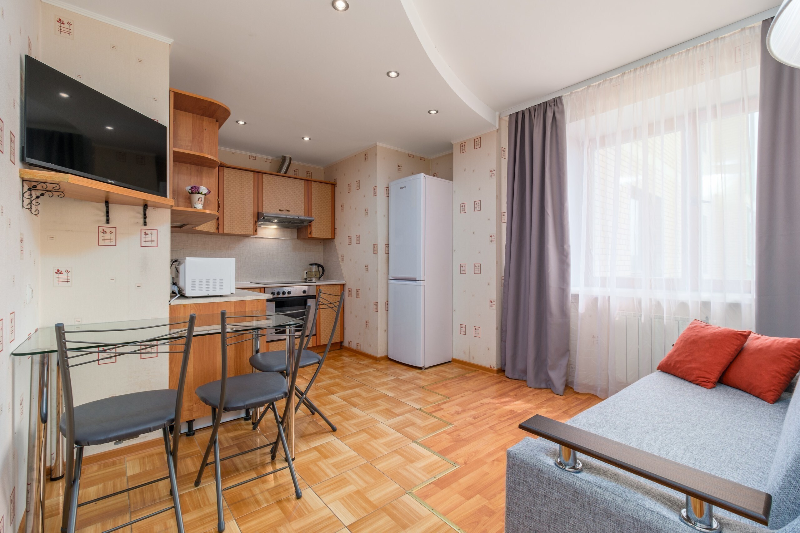 В квартире есть всё для комфортного проживания четверых гостей: двуспальная кровать, раскладной диван, шкаф-купе, холодильник, оснащенная кухня где есть все для приготовления пищи, а также всегда свежее постельное белье и полотенца.