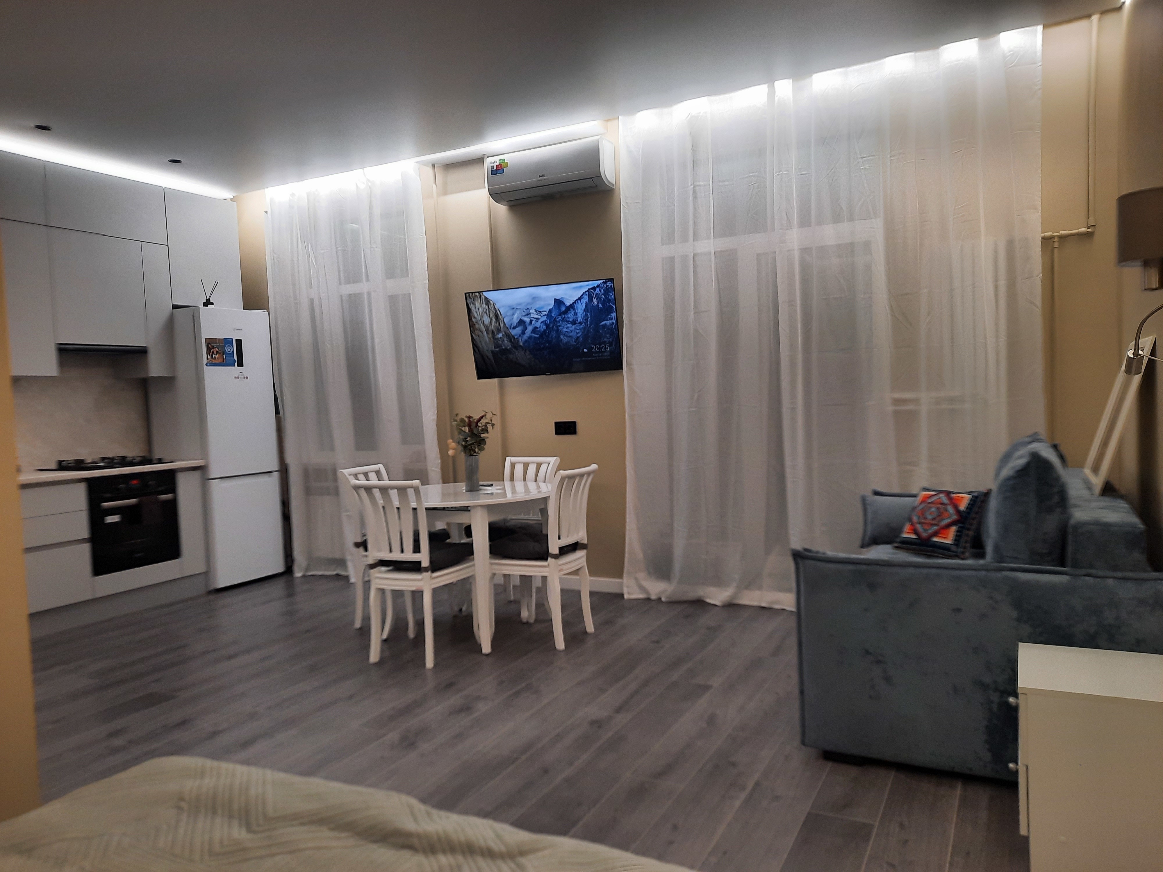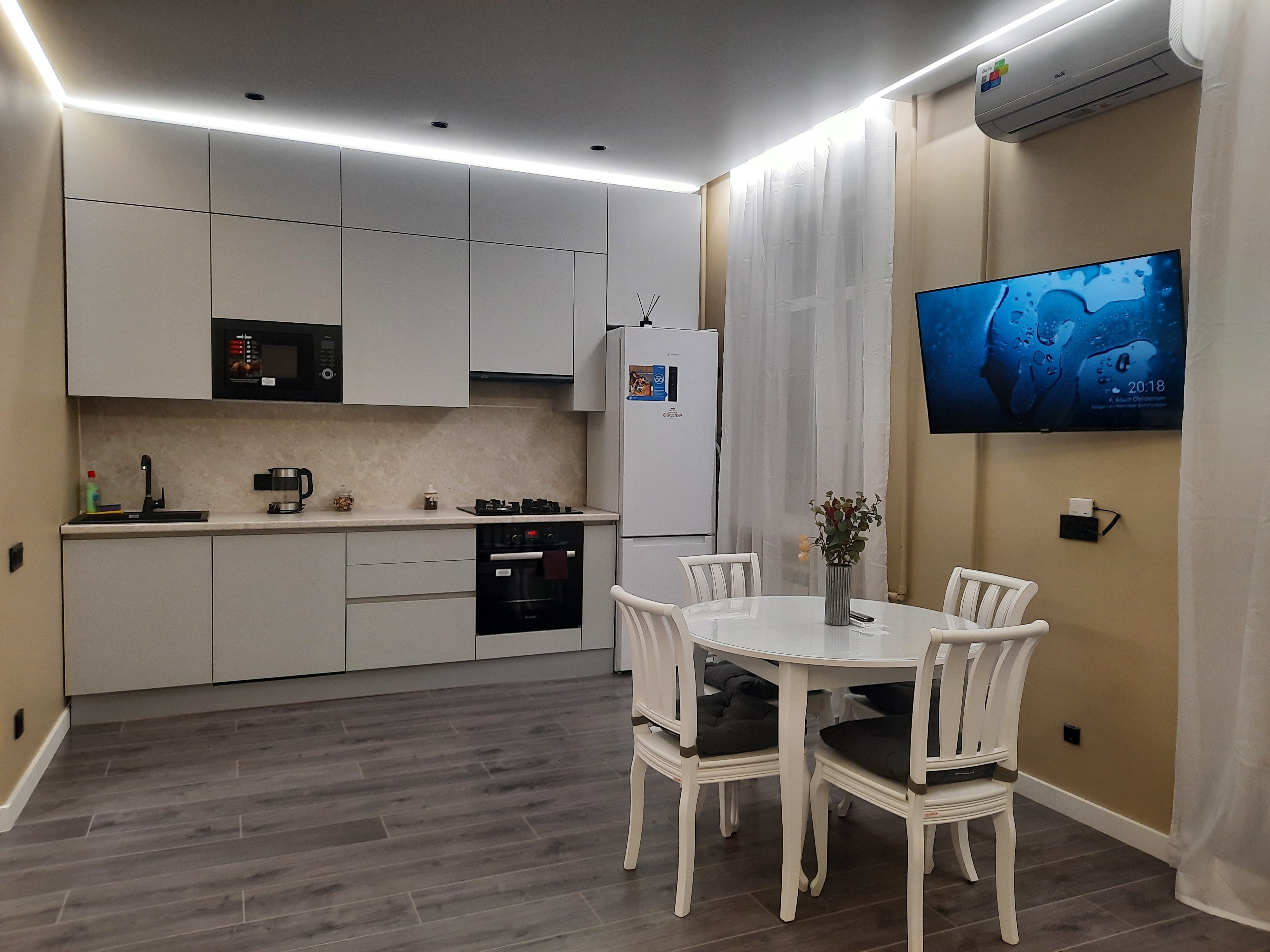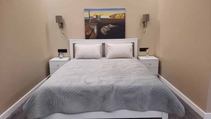 Квартира оснащена всем необходимым для проживания: кондиционер, бесплатный wi-fi, посудомоечная машина, холодильник, газовая плита и духовка, микроволновка, стиральная машина и многое другое. Комфортная двуспальная кровать и раскладывающийся диван свободно вместят четырех гостей. Идеальный вариант как для молодых пар, так и для семей с детьми.
