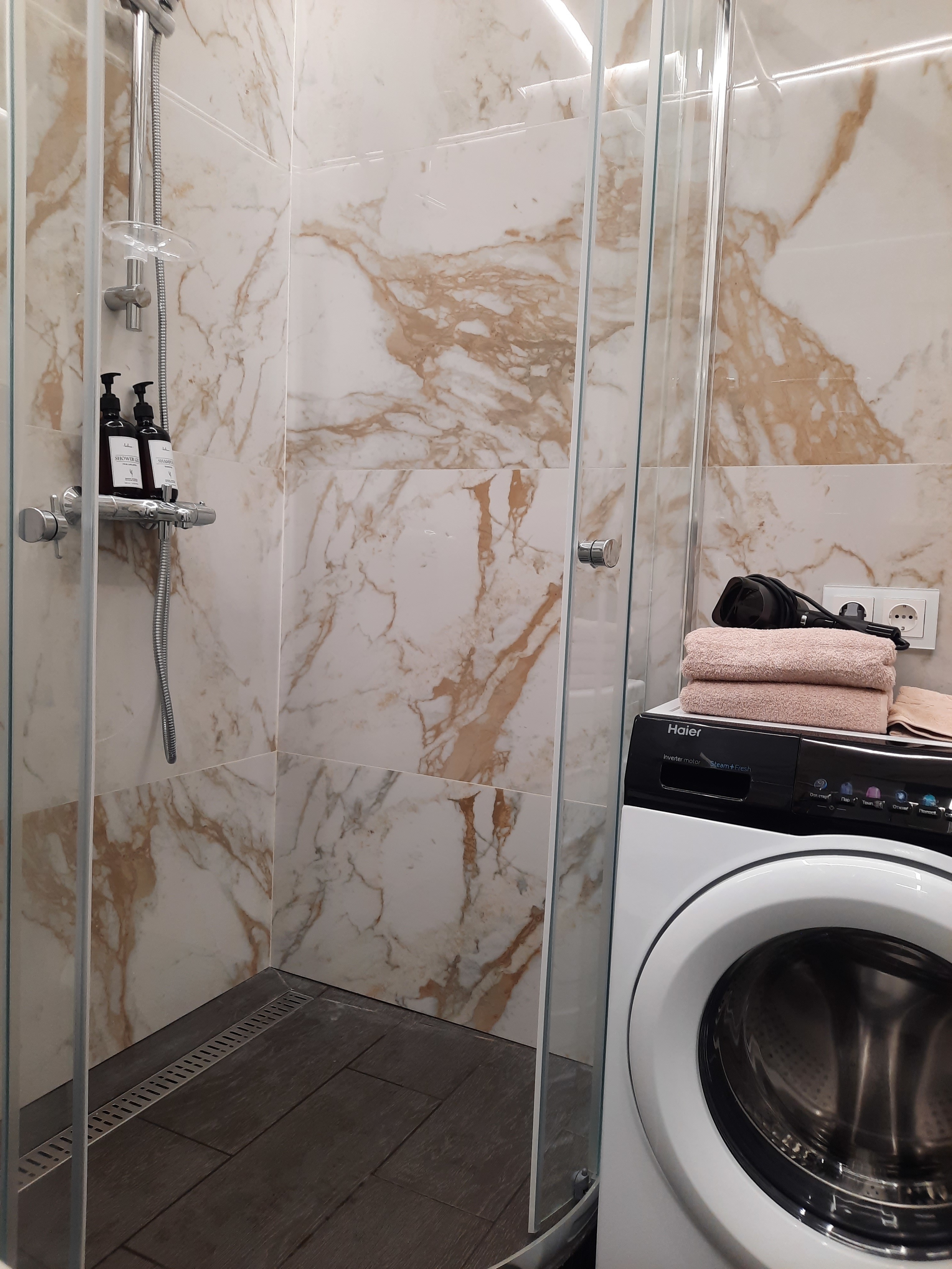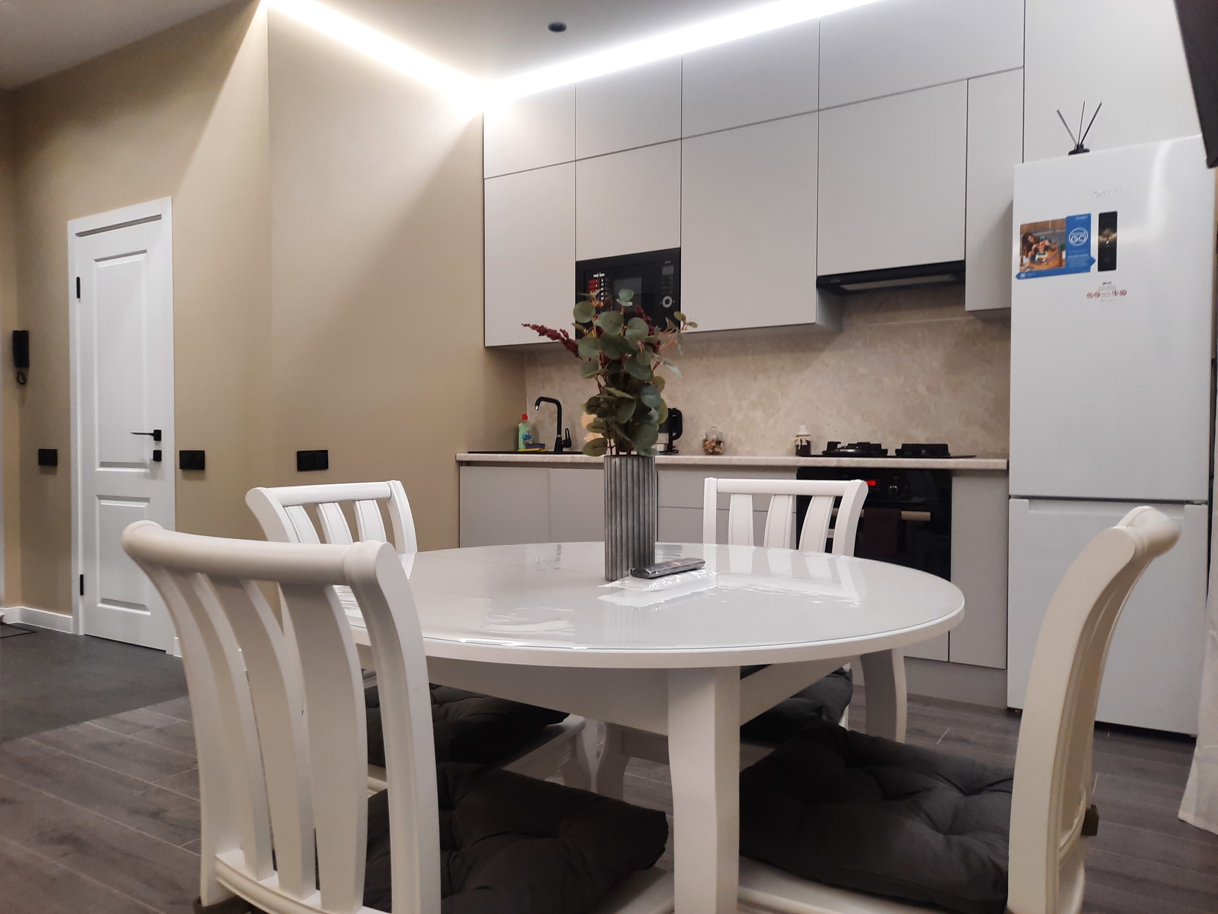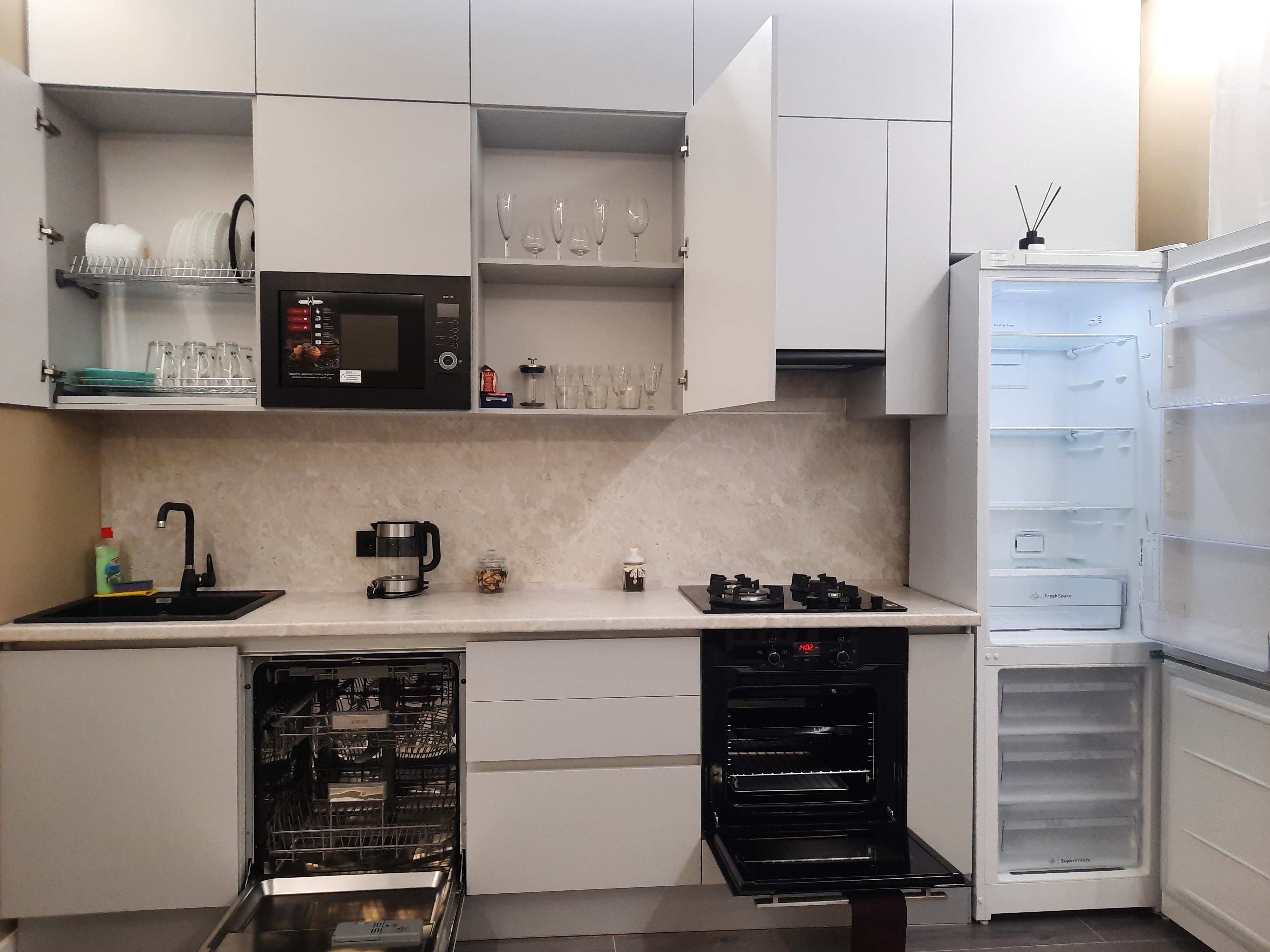 Квартира оснащена всем необходимым для проживания: кондиционер, бесплатный wi-fi, посудомоечная машина, холодильник, газовая плита и духовка, микроволновка, стиральная машина и многое другое. Комфортная двуспальная кровать и раскладывающийся диван свободно вместят четырех гостей. Идеальный вариант как для молодых пар, так и для семей с детьми.