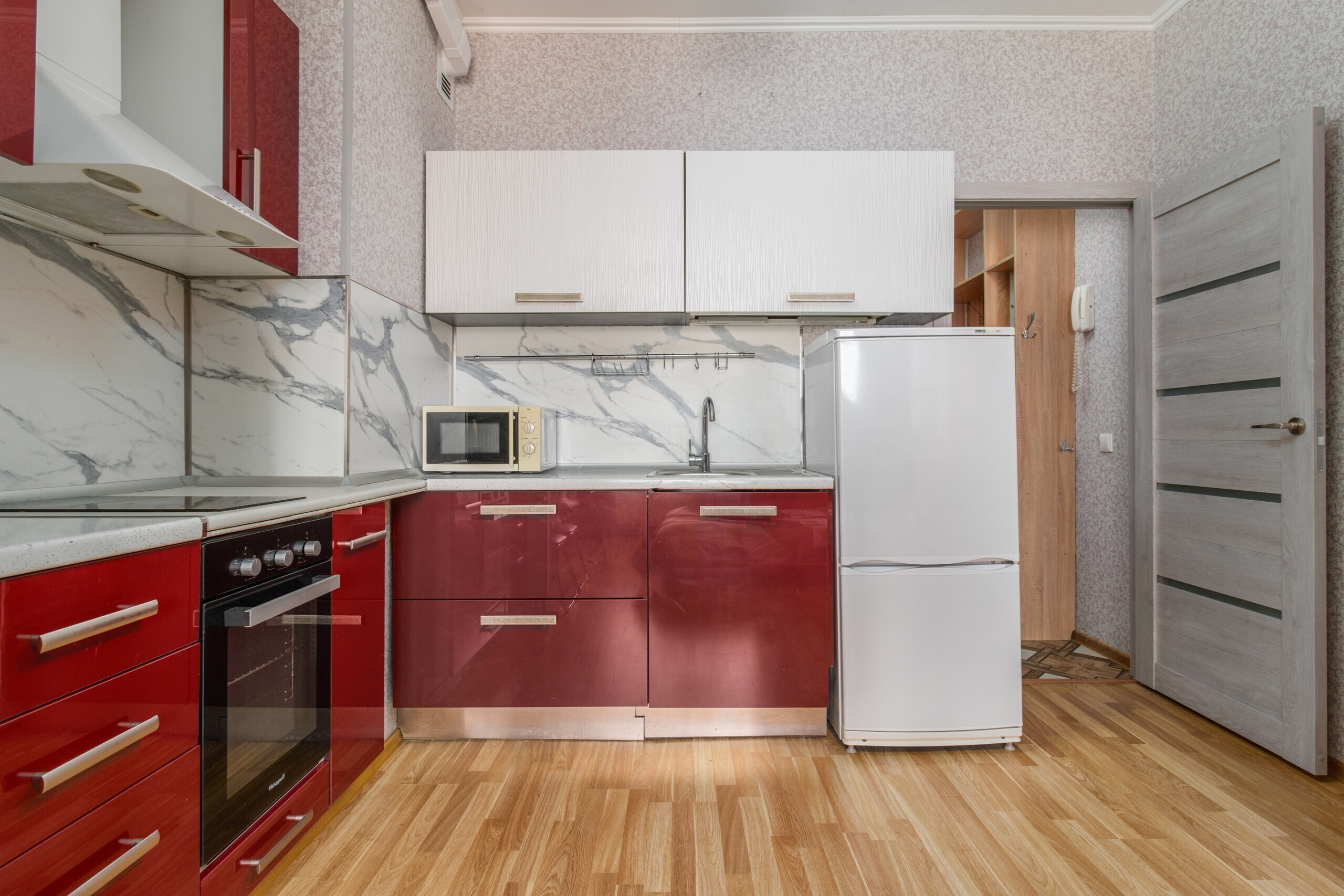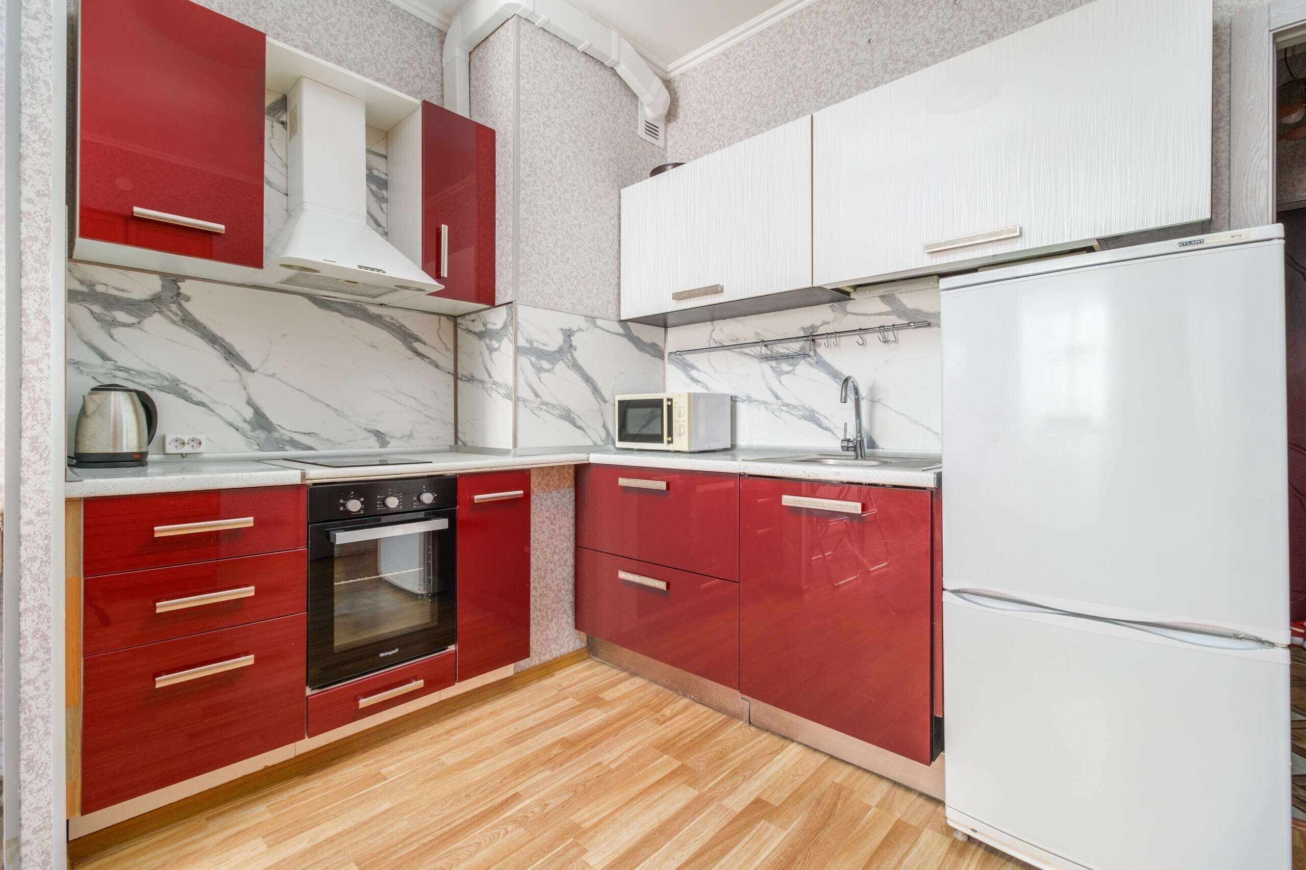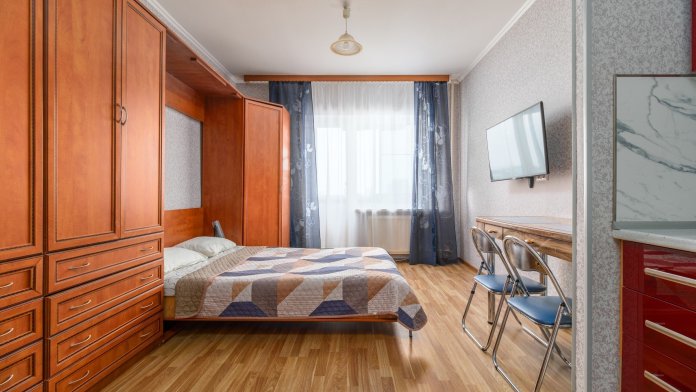 Кухонная зона оснащена всем необходимым для проживания. В шаговой доступности от квартиры несколько парков для прогулок. Три остановки метро от самого центра города. Рядом расположено несколько крупных медицинских учреждений. Из окна открывается панорамный вид на район.