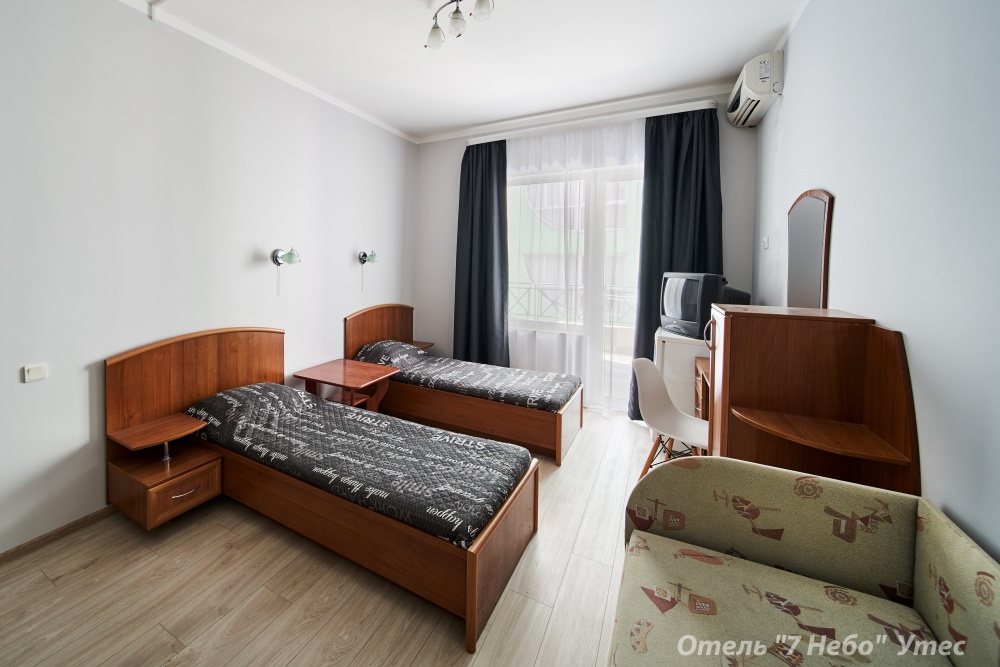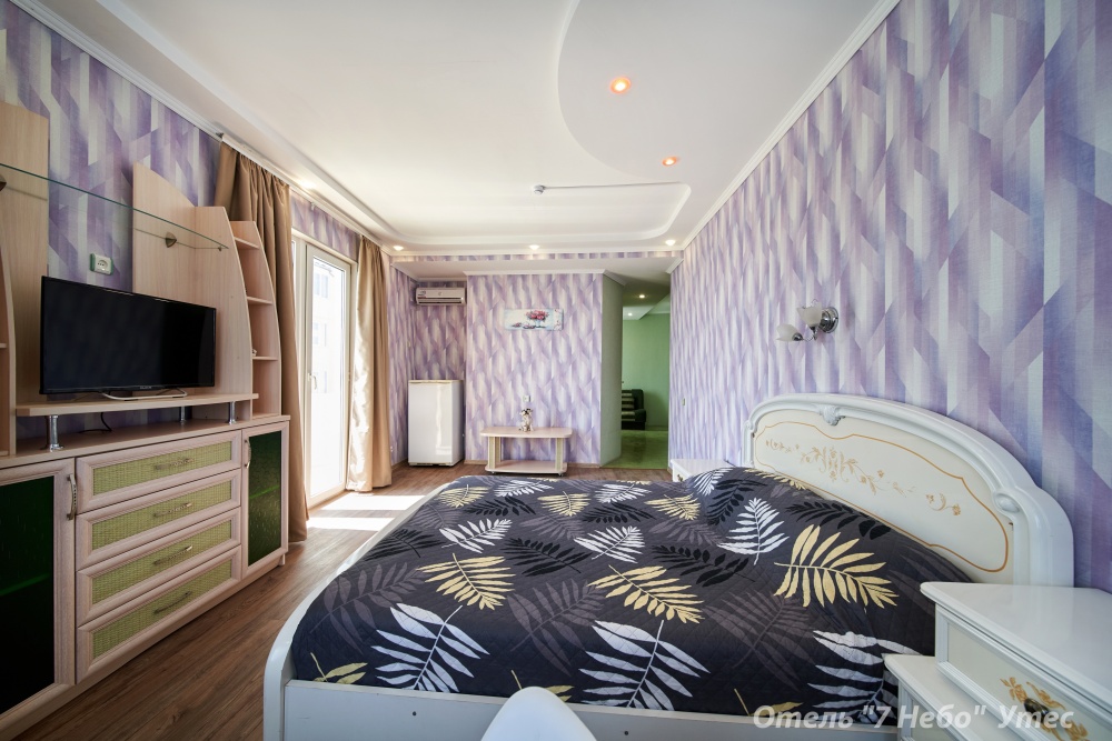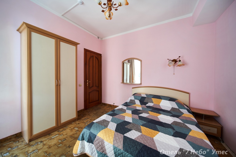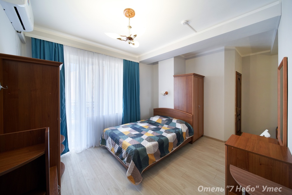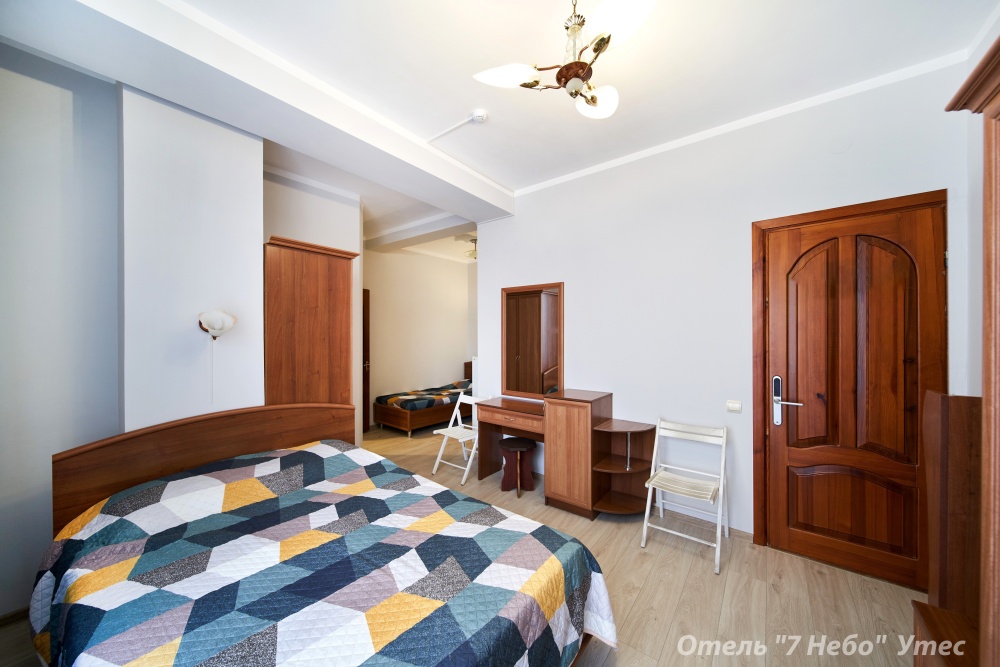 В номере одна двухместная кровать и двуспальный или полуторный раскладной диван.