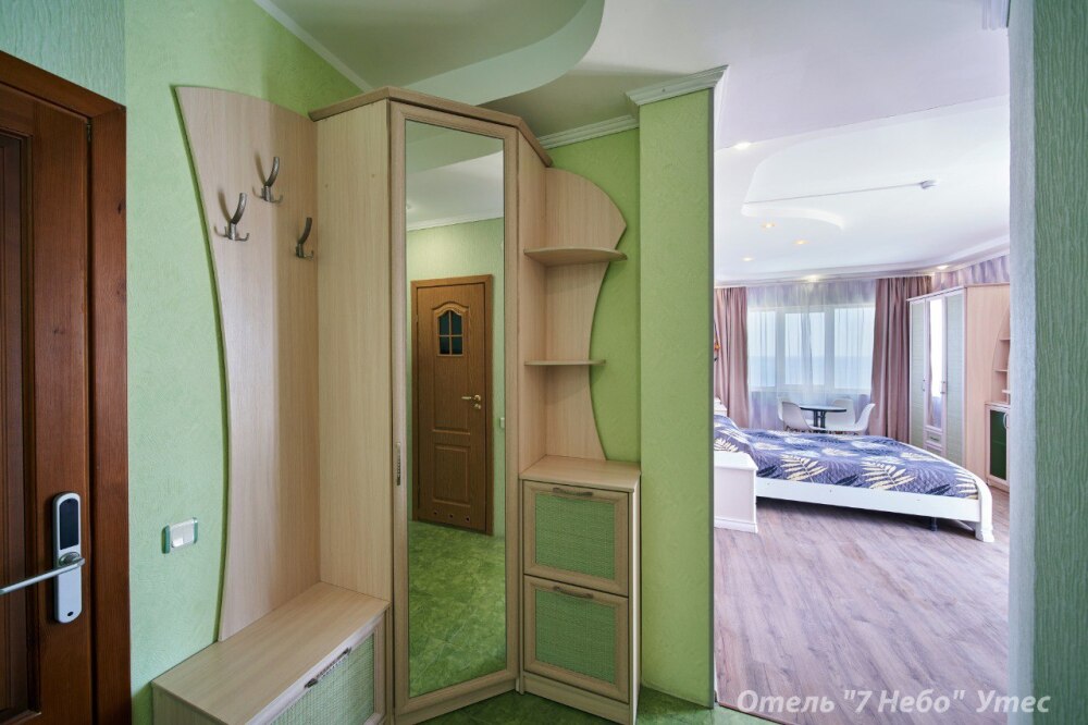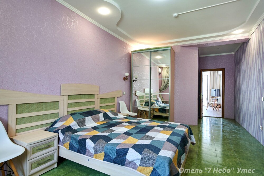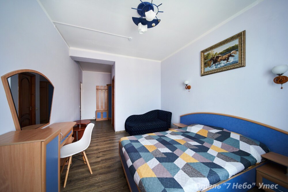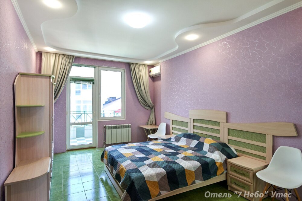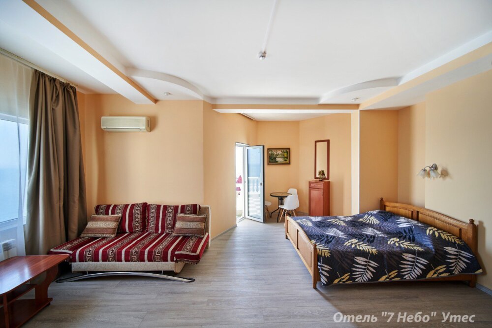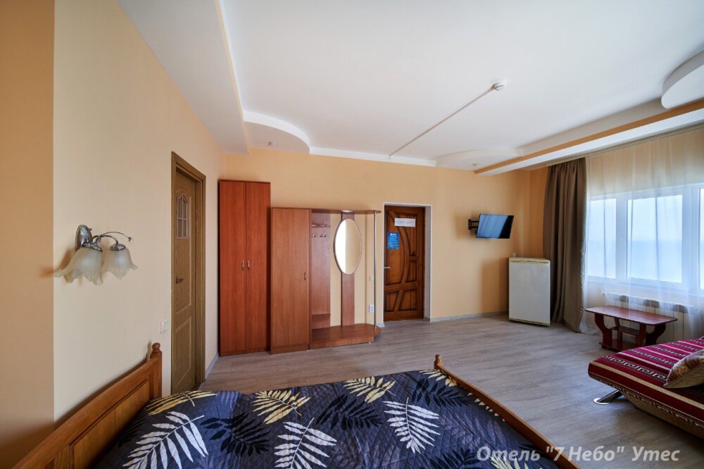 В номере одна двухместная кровать и двуспальный или полуторный раскладной диван.
