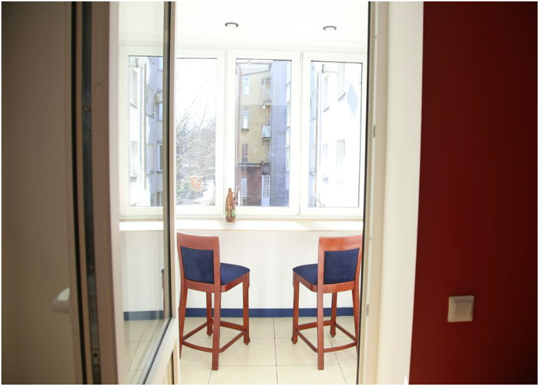 Апартаменты имеют целых три обеденные зоны, одна из которых расположена на балконе с остеклением по периметру и барными столом и стульями, откуда открывается вид на Калининградский зоопарк. Вторая обеденная зона - непосредственной гостиной за столом с удобными стульями, где комфортно расположится на ужин до 4 человек. И наконец третья - мини-зона в виде барной стойки непосредственно в кухне, где можно попить кофе одному глядя в окно думая о вечном.