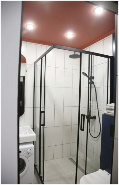 Прекрасная ванная комната со стильной сантехникой серого и синего цвета позволит принять душ перед сном, а большой шкаф позволит удобно разместить все Ваши вещи.