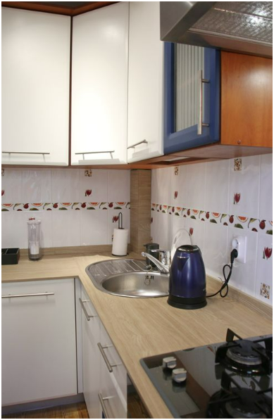 Кухонная зона оборудована всем необходимым - от микроволновки и холодильника до варочной поверхности с посудой если есть желание приготовить себе утром «яишенку» на завтрак, если Вы предпочитаете готовить самостоятельно, а не не ужинать или завтракать в многочисленных кафе.