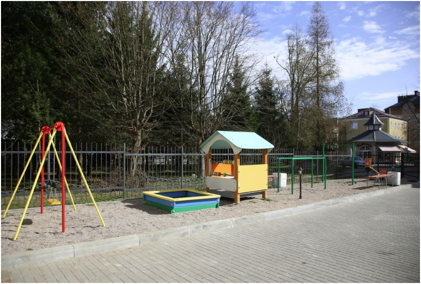 Во дворе - детская площадка для самых маленьких, а огороженная территория позволит не бояться за их нахождение без пристального внимания.