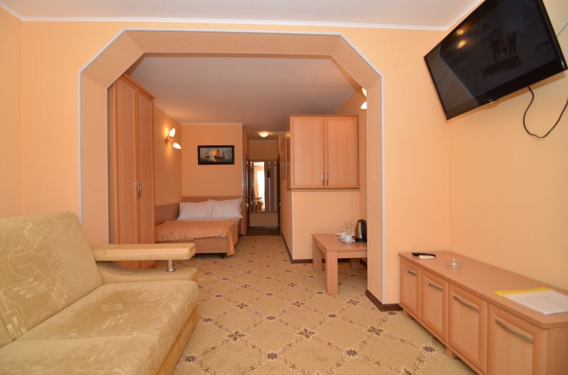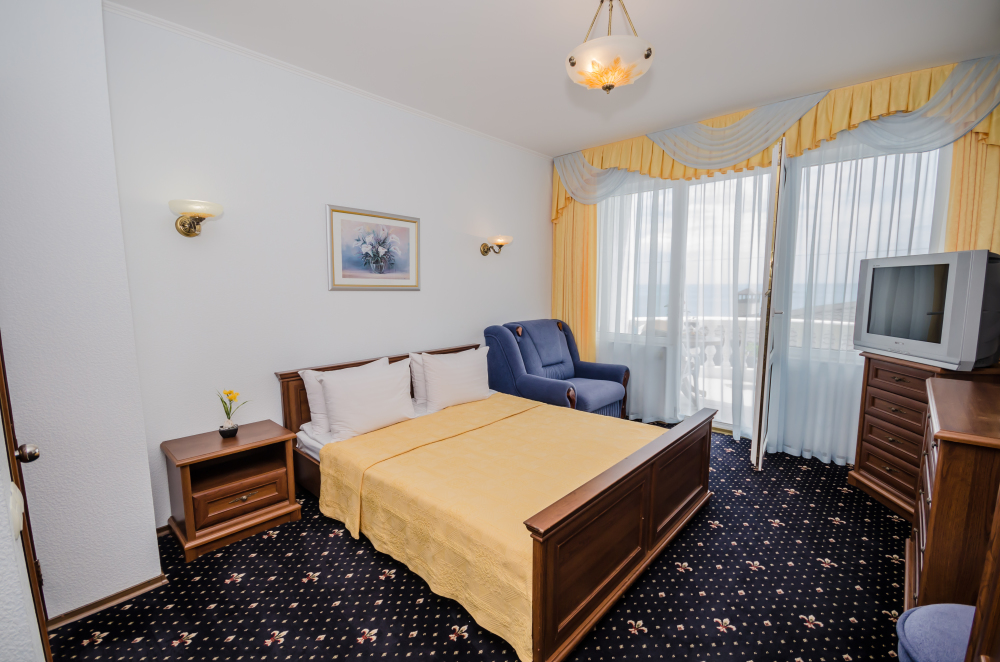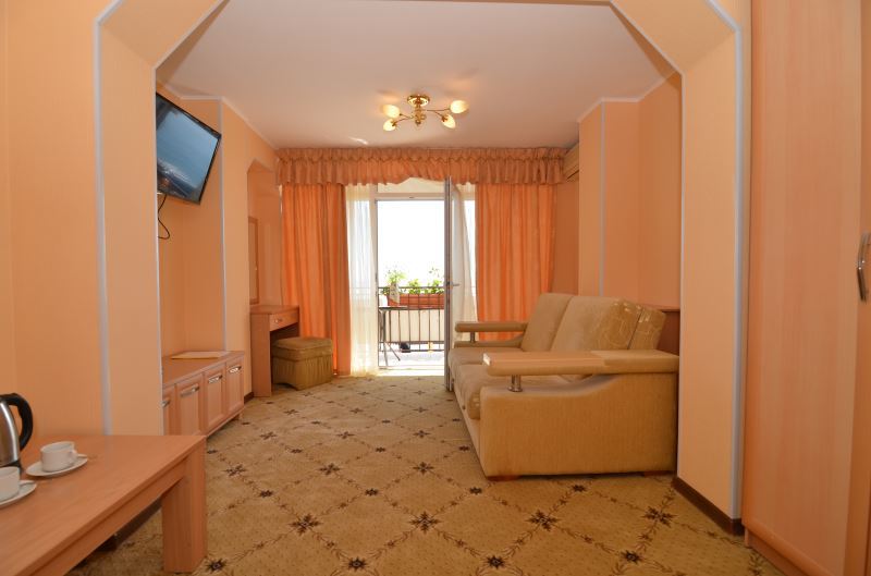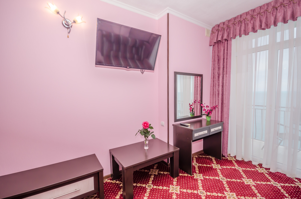 Номера выходят на южную сторону. Здесь всегда светло и по-южному тепло. Для комфортного отдыха вдвоем номер располагает всем необходимым. Это балкон с чудесным видом, кондиционер для создания прохлады, полный пакет телеканалов.