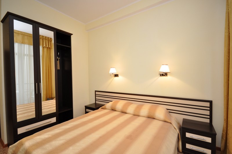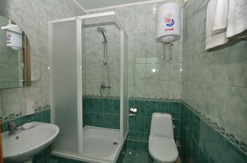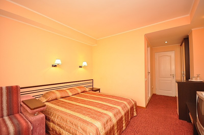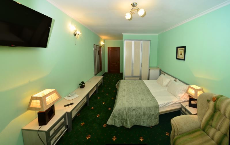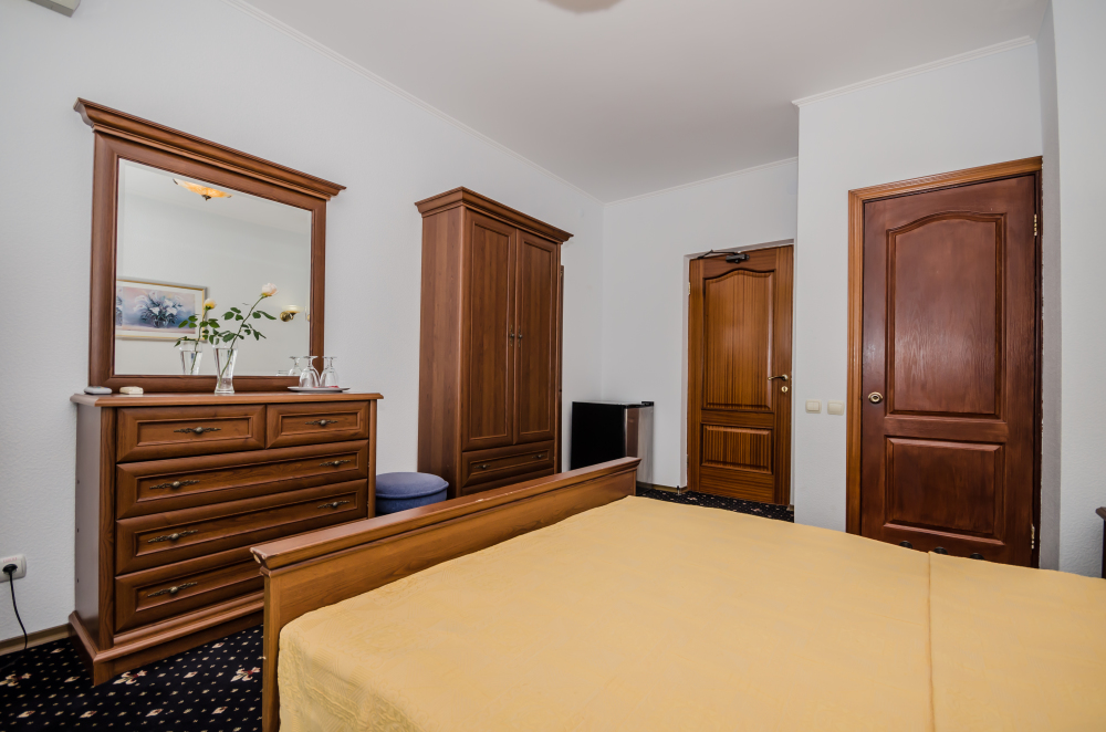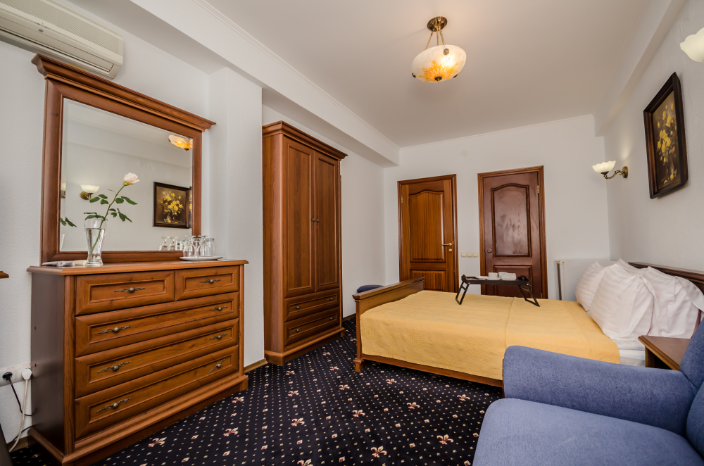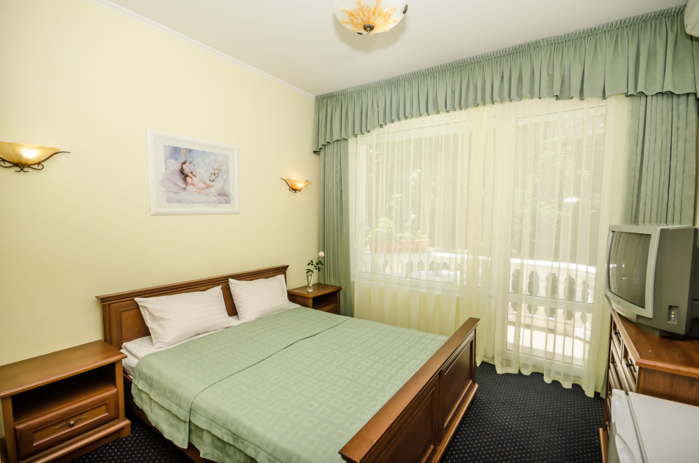 Номера выходят на северную сторону. Для комфортного отдыха вдвоем номер располагает всем необходимым. Это кондиционер для создания прохлады, полный пакет телеканалов, Wi-Fi. Номер без балкона.