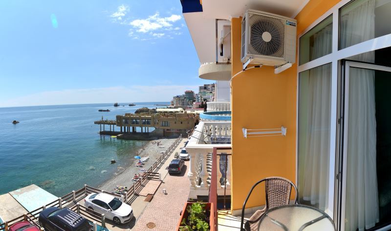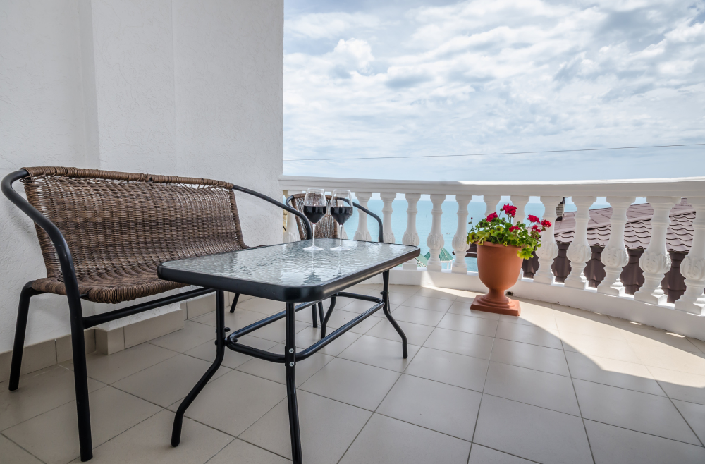 Находясь на балконах можно любоваться бескрайними морскими просторами, наблюдать за игрой дельфинов в море и дружить с бакланами, которые прилетают в гости, на балконах есть пластиковая мебель для отдыха, бокалы для напитков, белое хлопковое белье.