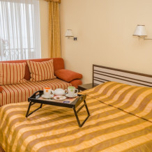 Номера выходят на северную сторону. Для комфортного отдыха вдвоем номер располагает всем необходимым. Это балкон, кондиционер для создания прохлады, полный пакет телеканалов.