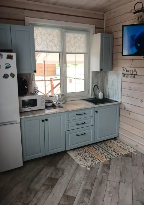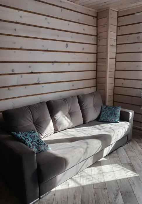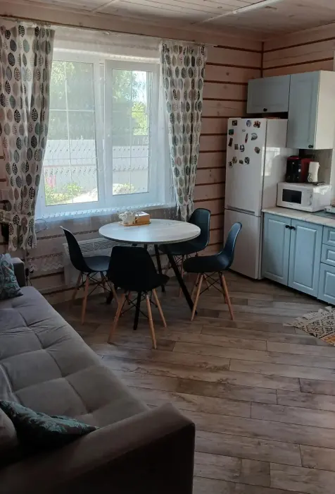Деревянный дом вмещает до 5 гостей. В доме 2 комнаты, из них 2 спальни. Полностью благоустроенный, есть все для комфортного отдыха, со всеми удобствами.