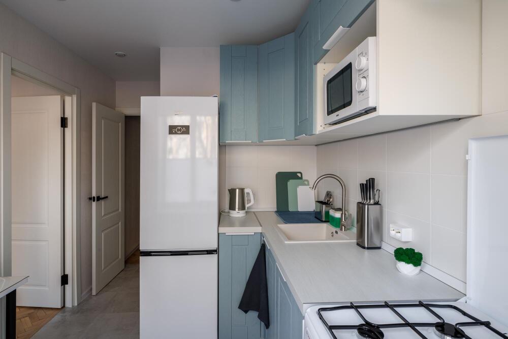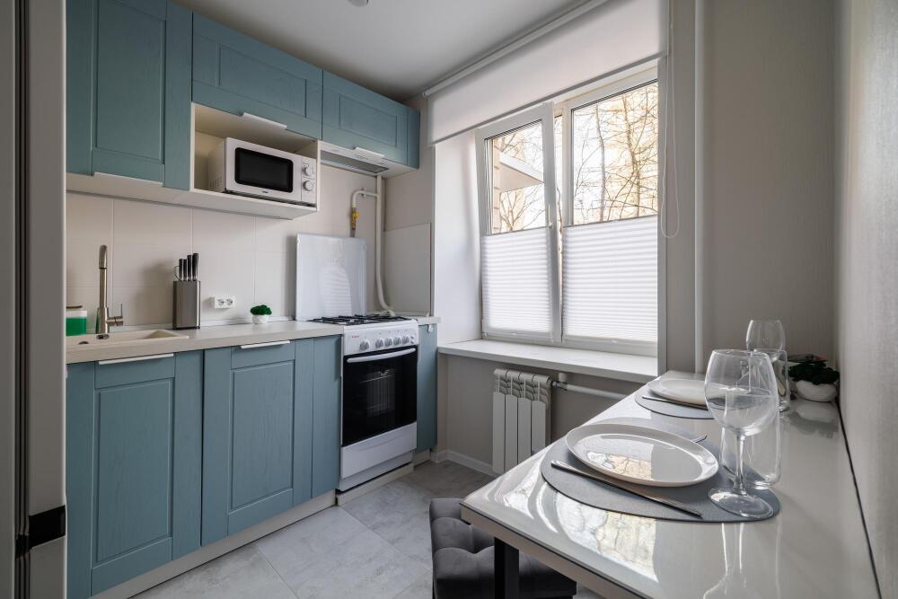 Оснащение: телевизор, кухня, холодильник, электрический чайник, микроволновая печь, фен, плита, духовка, стиральная машина, посудомоечная машина.