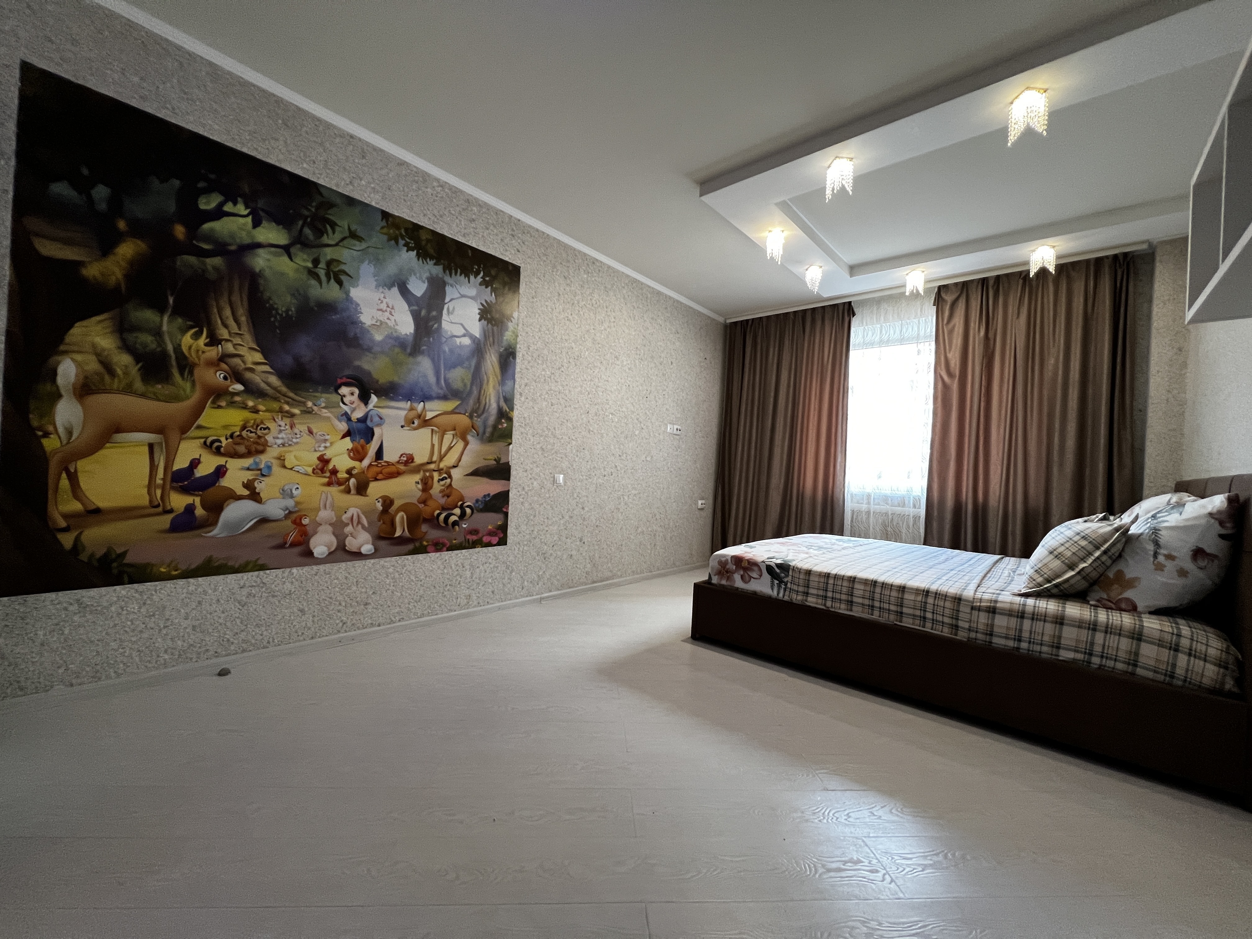 В квартире есть все необходимое: двухспальная кровать, диван, кухонный гарнитур, плита, микроволновка, чайник, стиральная машина, телевизор, шкаф, обеденная зона, гладильные принадлежности, Wi-Fi. Предоставляются туалетно-косметические принадлежности.