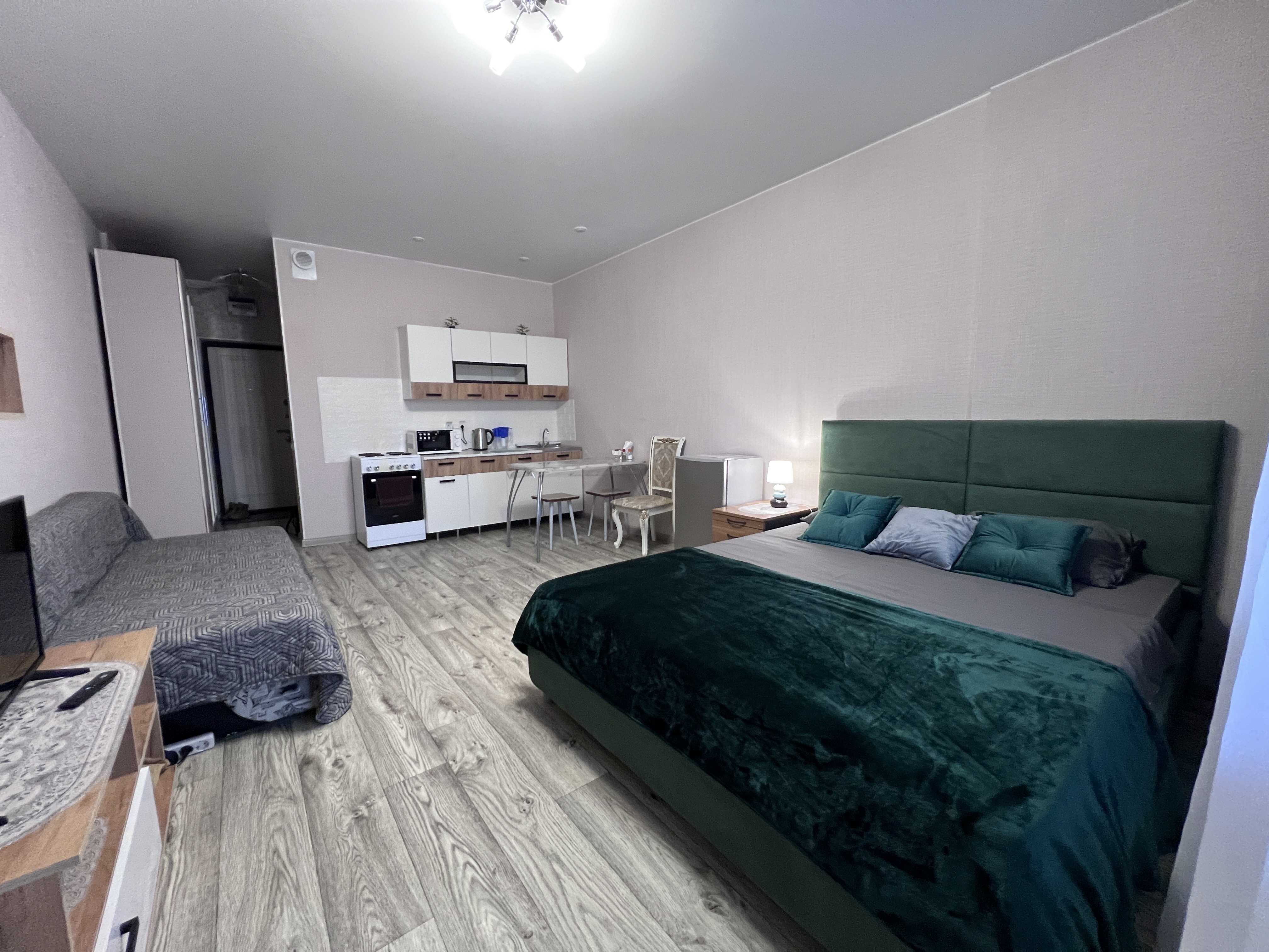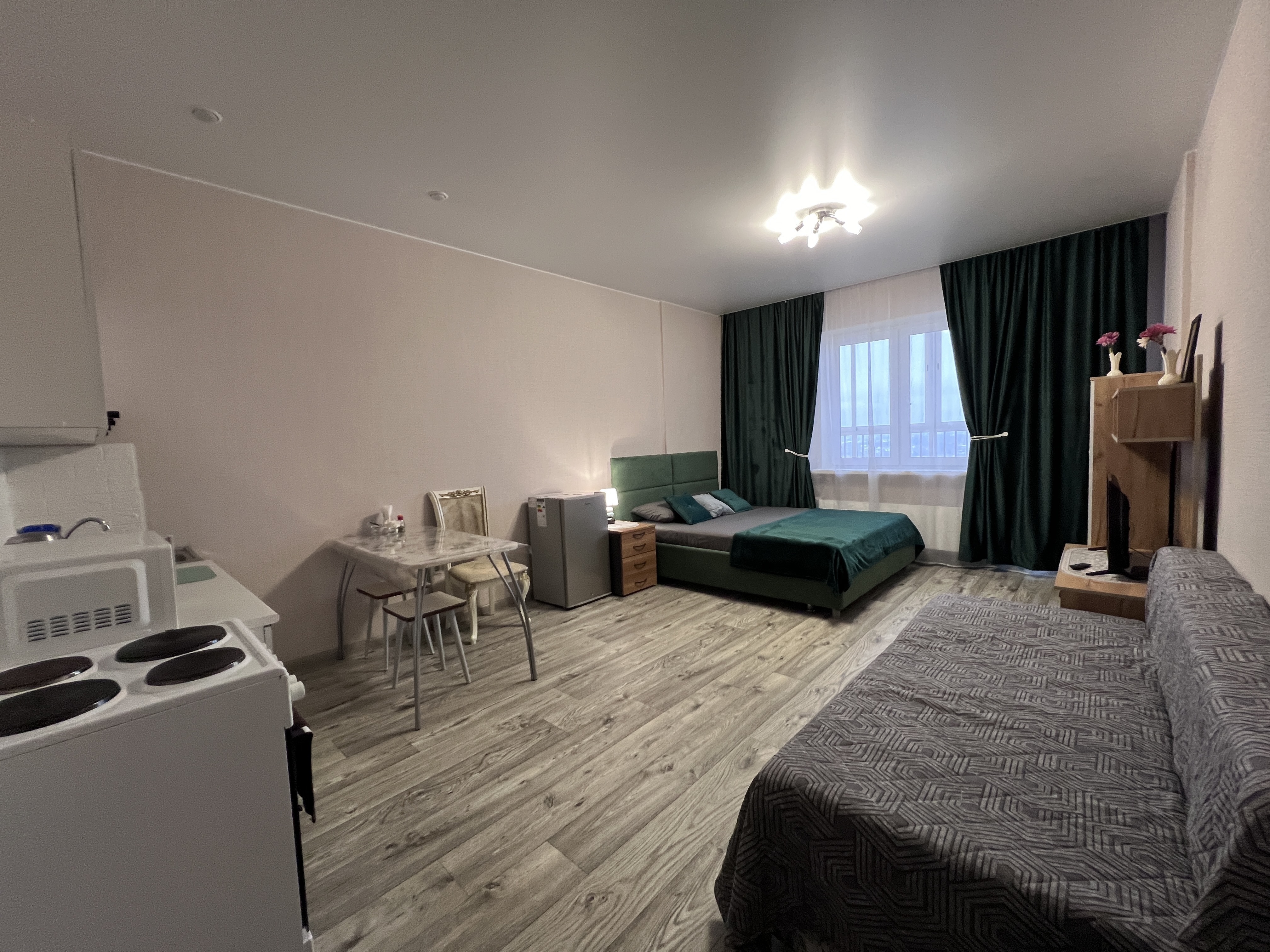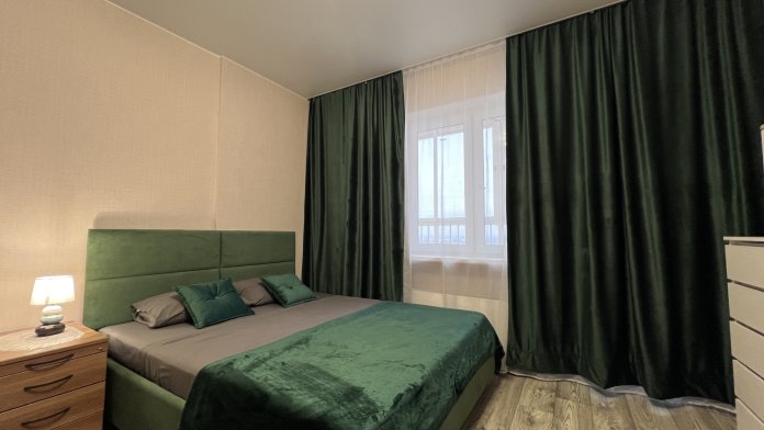 В квартире есть все необходимое: двухспальная кровать, диван, кухонный гарнитур, плита, микроволновка, чайник, стиральная машина, телевизор, шкаф, обеденная зона, гладильные принадлежности, Wi-Fi. Предоставляются туалетно-косметические принадлежности.