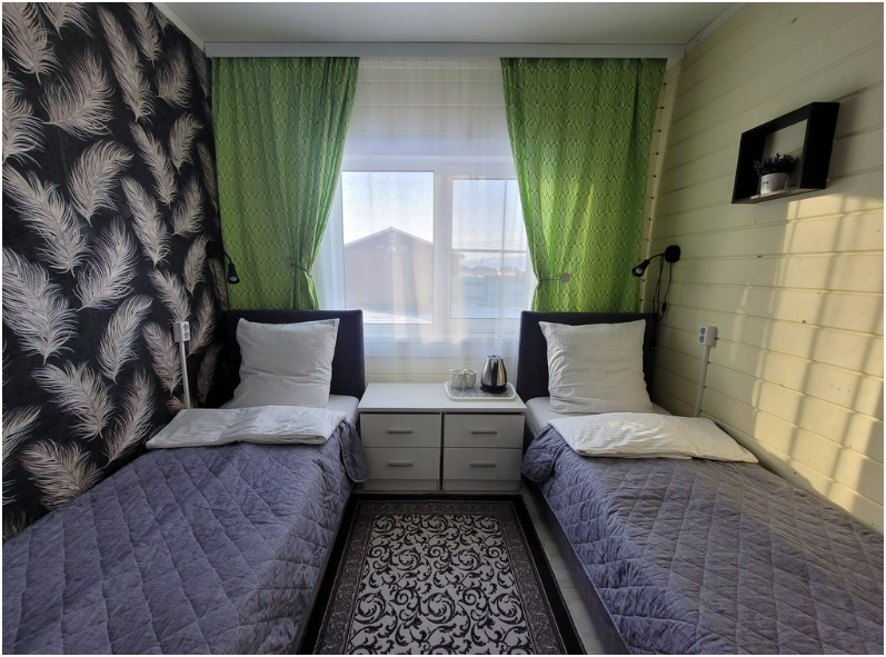 Небольшой номер с двумя раздельными кроватями и общим туалетом и душем.