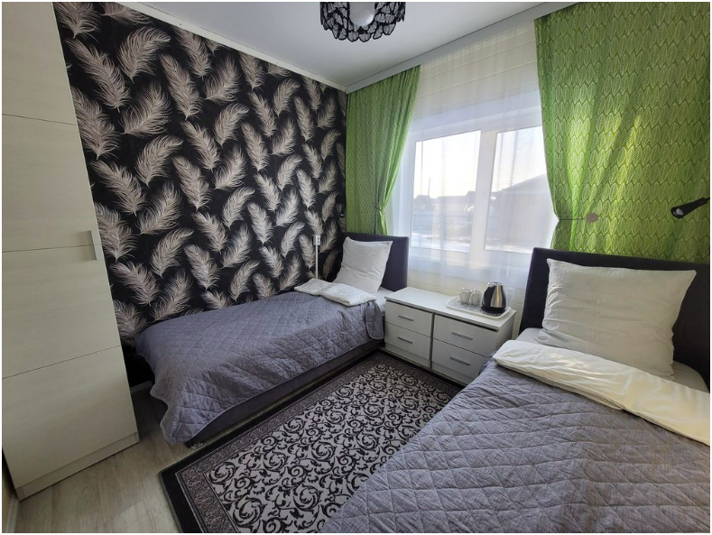 Семейный номер с видом во двор имеет комфортные условия проживания и в нашей столовой можно дополнительно заказать домашнюю, вкусную еду.