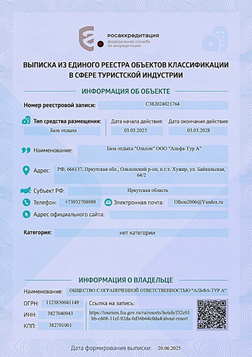 Объект прошёл классификацию. Номер реестровой записи: С382024021764.