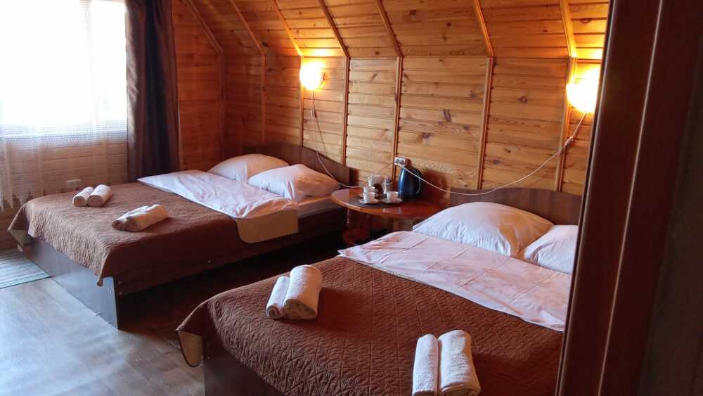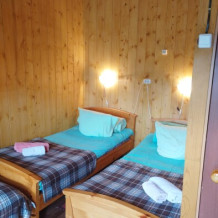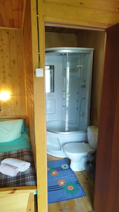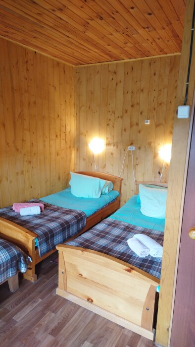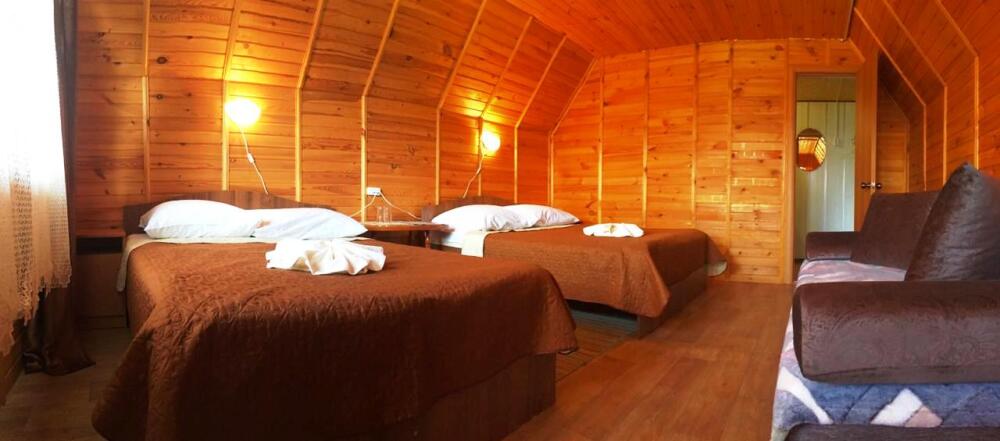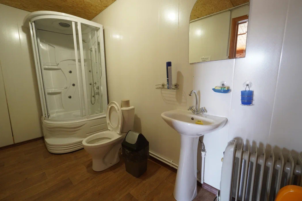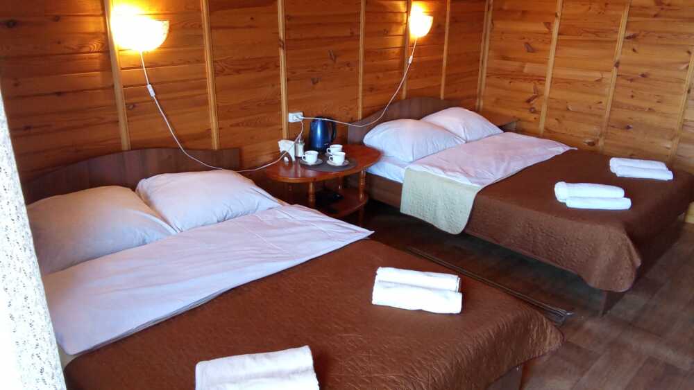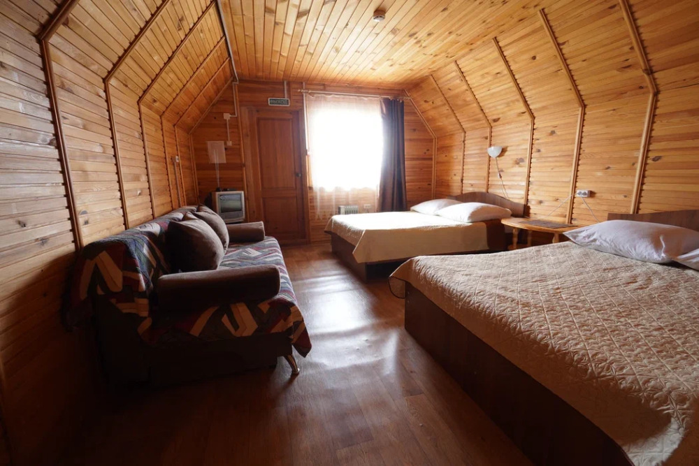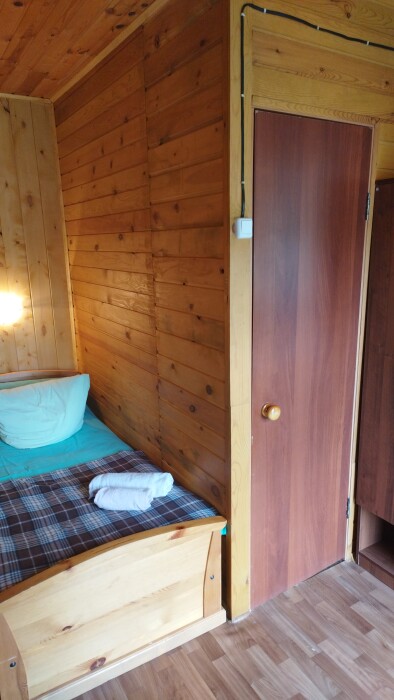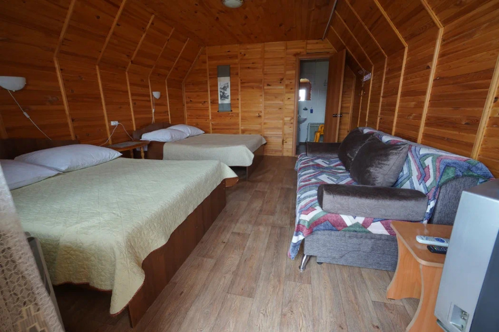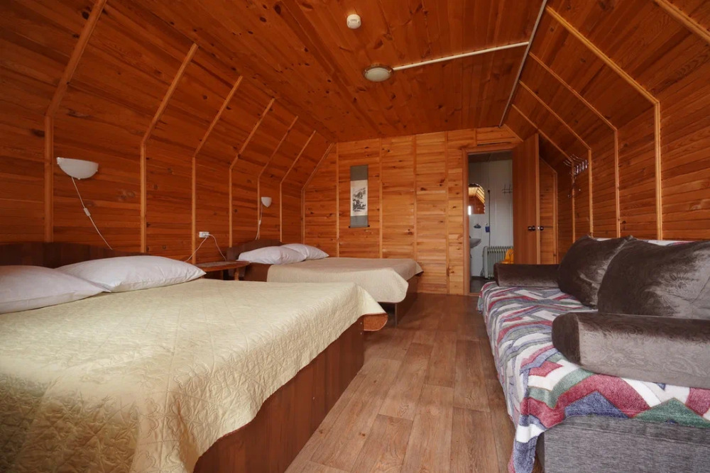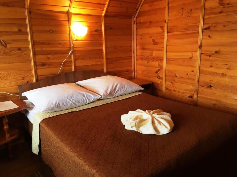 Для проживания и отдыха предоставляются уютные домики. Они оснащены всей мебелью и техникой для хорошего времяпровождения: удобные кровати, шкафы и тумбочки для хранения вещей. Собственный санузел укомплектован необходимой сантехникой и набором полотенец. Можно воспользоваться услугами прачечной.