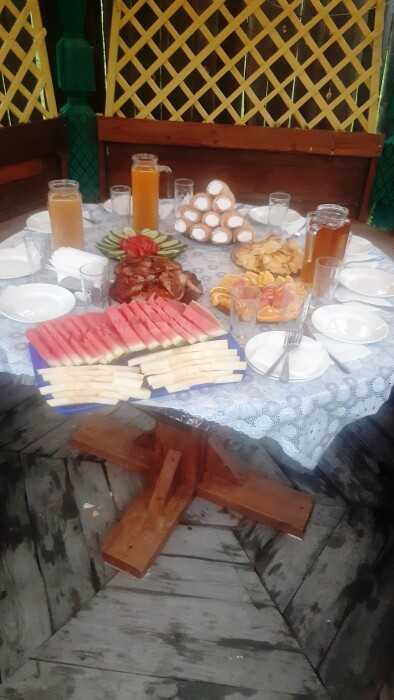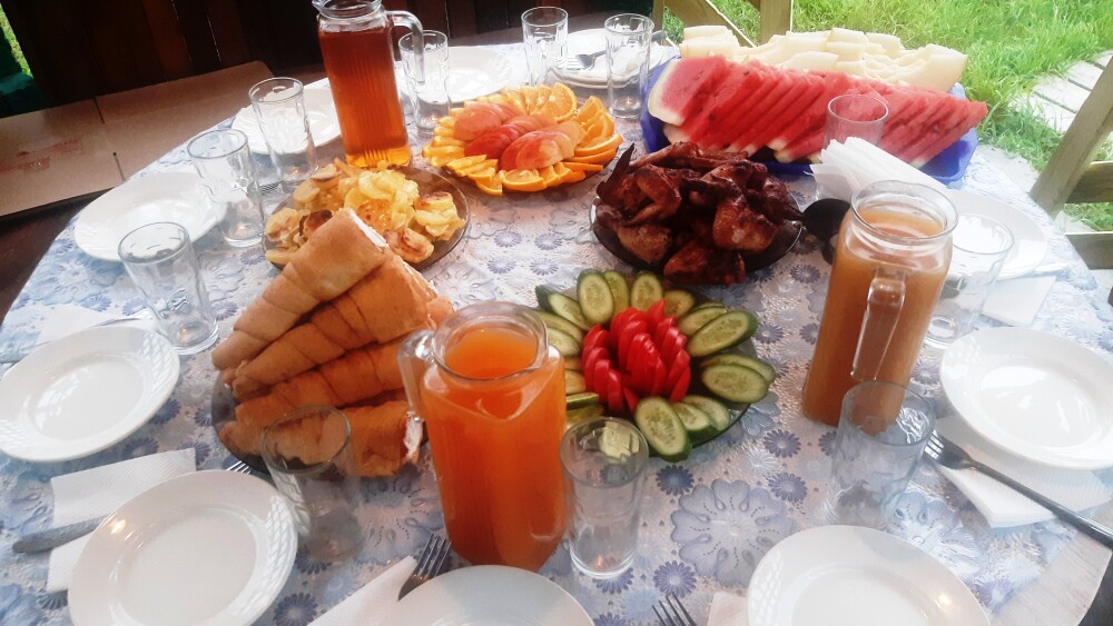 Работает ресторан с наличием специального диетического меню. Выдают упакованные ланчи, а также гости могут приготовить блюда на мангальной зоне самостоятельно.