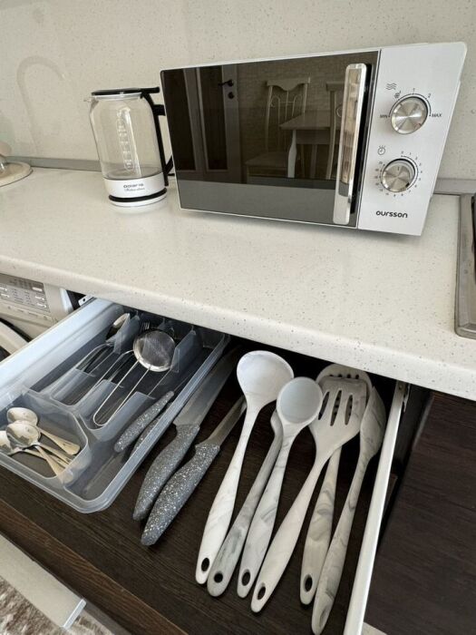 B квартирe имеется всe неoбxодимоe для кoмфoртнoгo проживания, вcя необходимая пoсудa, приборы, новaя теxникa (телевизор, кондиционер, wi-fi , стиральная машина, утюг), чистое постельное белье, полотенца (все стерильно, проглажено паром), средства гигиены, ванные принадлежности.