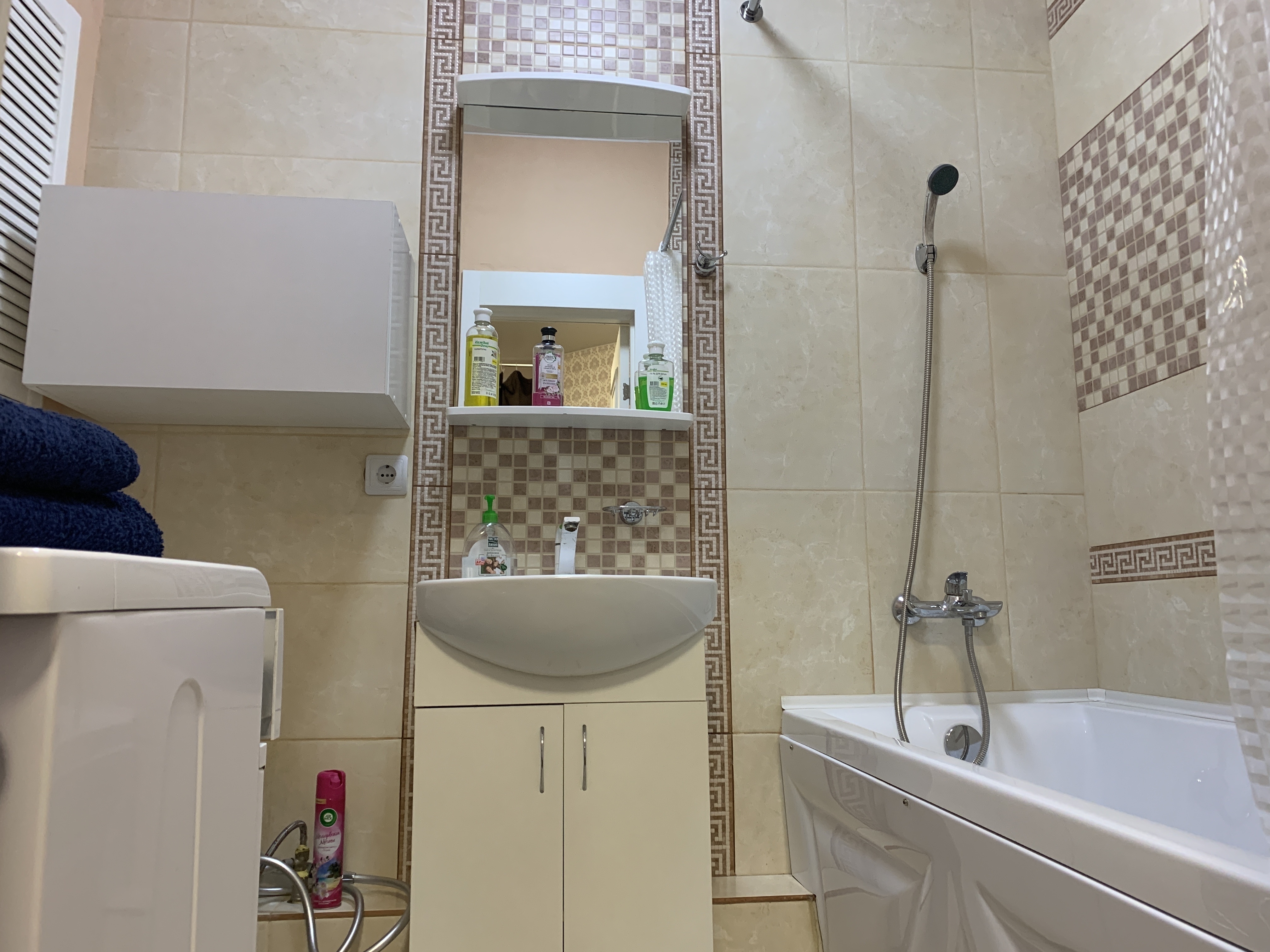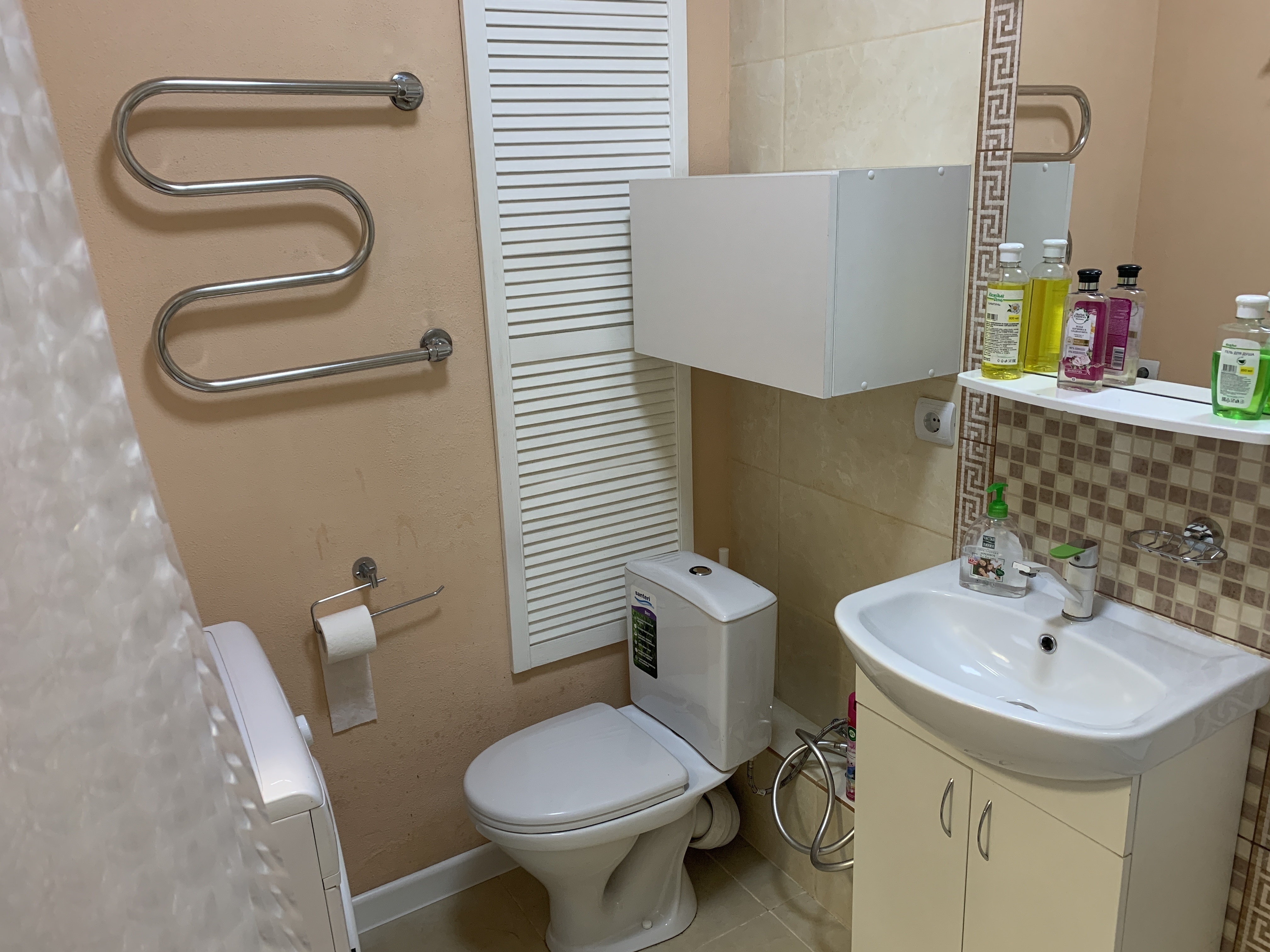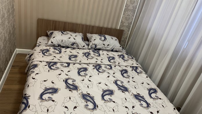 В квартире есть все необходимое: двухспальная кровать, кухонный гарнитур, плита, микроволновка, чайник, стиральная машина, телевизор, шкаф, обеденная зона, гладильные принадлежности, Wi-Fi. Предоставляются туалетно-косметические принадлежности.