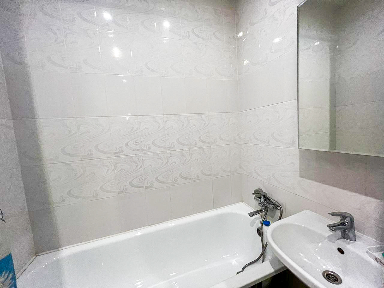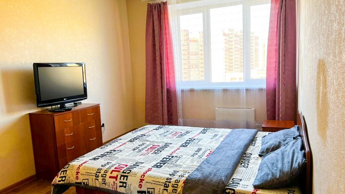 В квартире есть все необходимое: двухспальная кровать, кухонный гарнитур, плита, микроволновка, чайник, стиральная машина, телевизор, шкаф, обеденная зона, гладильные принадлежности, Wi-Fi. Предоставляются туалетно-косметические принадлежности.