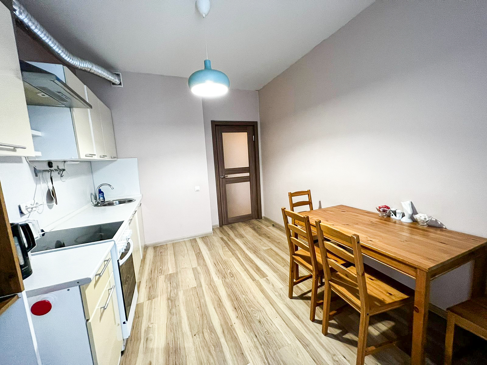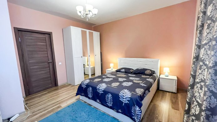 В квартире есть все необходимое: двухспальная кровать, диван, кухонный гарнитур, плита, микроволновка, чайник, стиральная машина, телевизор, шкаф, обеденная зона, гладильные принадлежности, Wi-Fi. Предоставляются туалетно-косметические принадлежности.