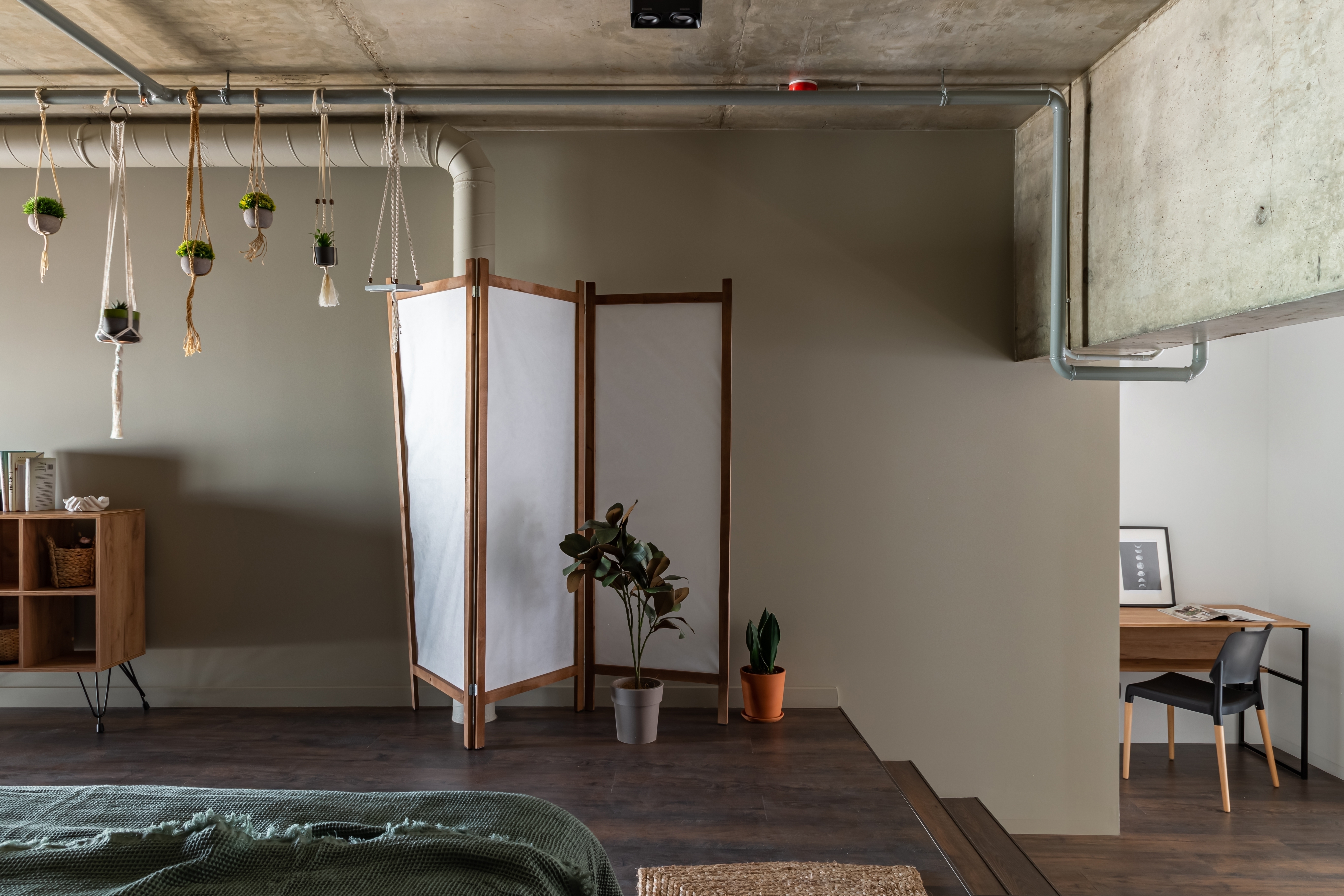 Спальня на 2 этаже - уединение посреди шумного города. Здесь вас ждет кровать king size с ортопедическим матрасом, а также зона отдыха и медитации.