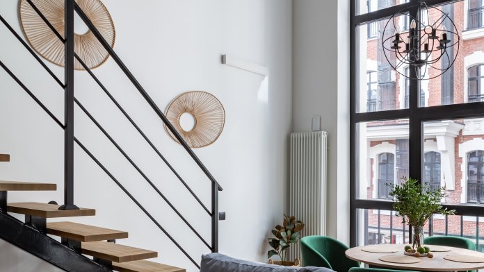 Лофт рассчитан на 5 гостей. Дизайнерский ремонт, историческая кирпичная кладка начала 20 века, пятиметровые потолки и панорамные окна словно переносят вас в богемный Нью-Йорк.