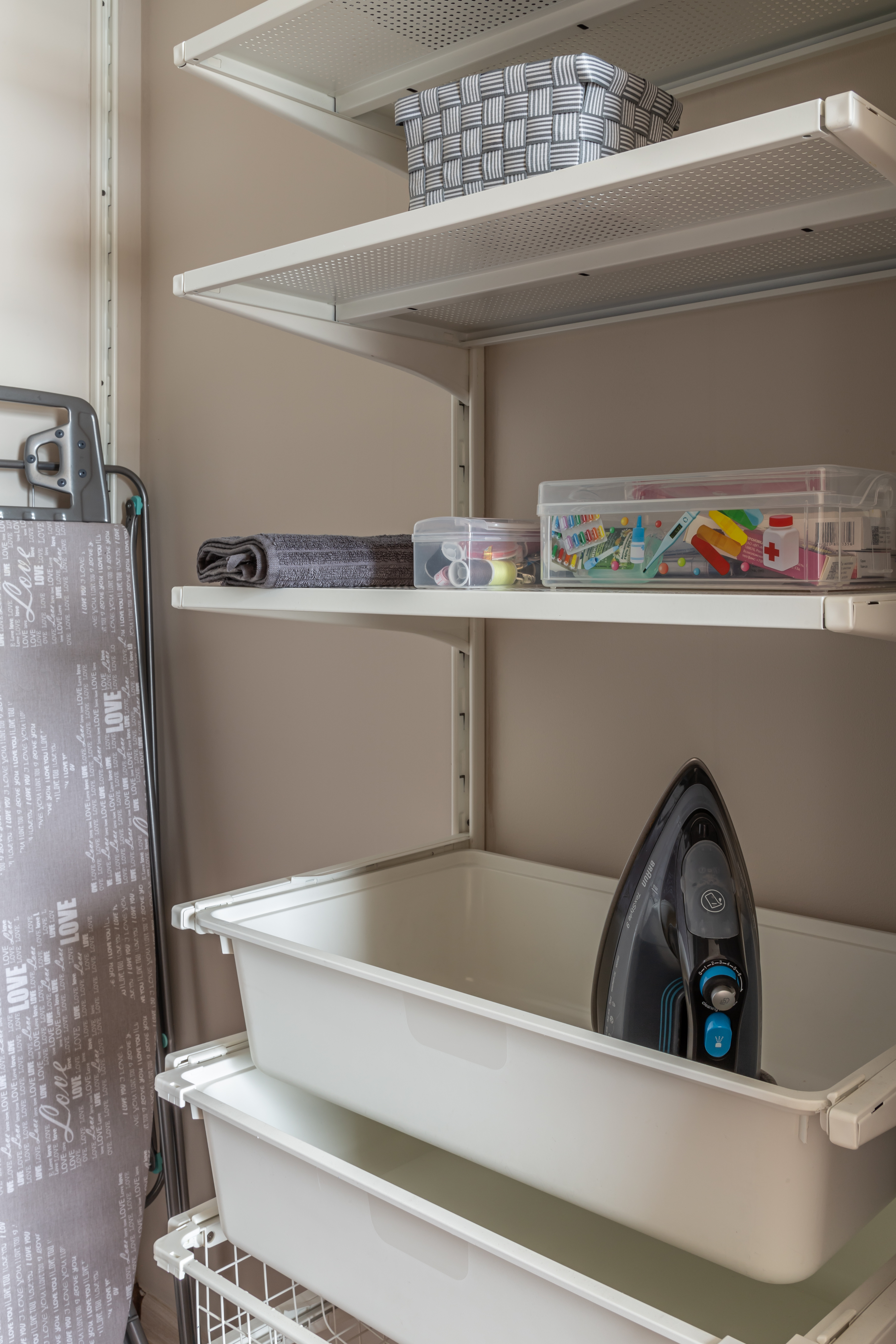 - гардеробная зона, где есть все для вашего идеального внешнего вида (гладильная доска, утюг, вешалки и полки).