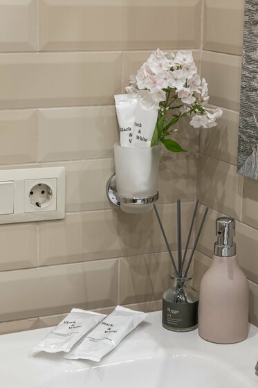 - мягкие халаты, косметические принадлежности (жидкое мыло, шампунь, кондиционер для волос, гель для душа, мицеллярная вода, крема, маски и т. д.).
