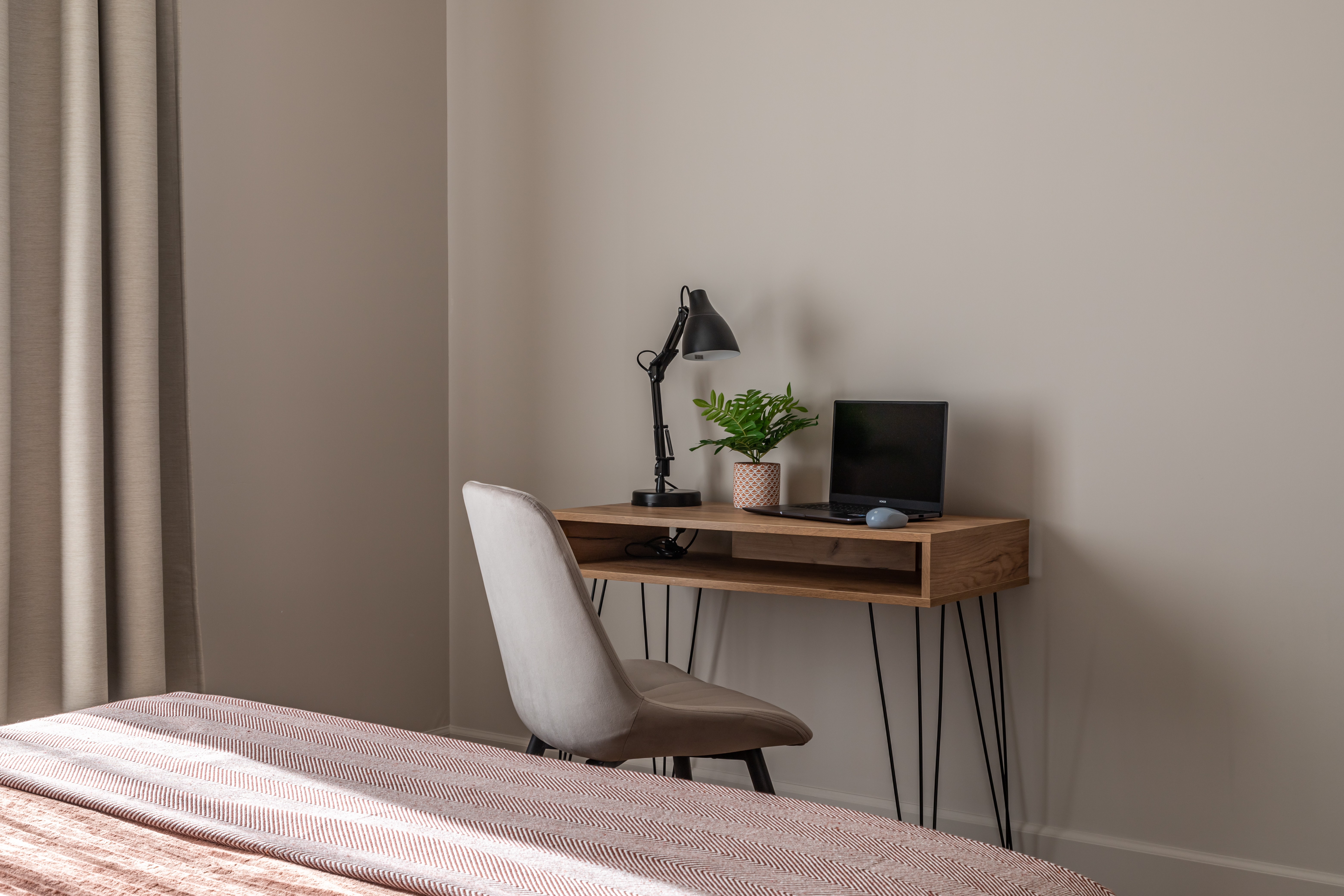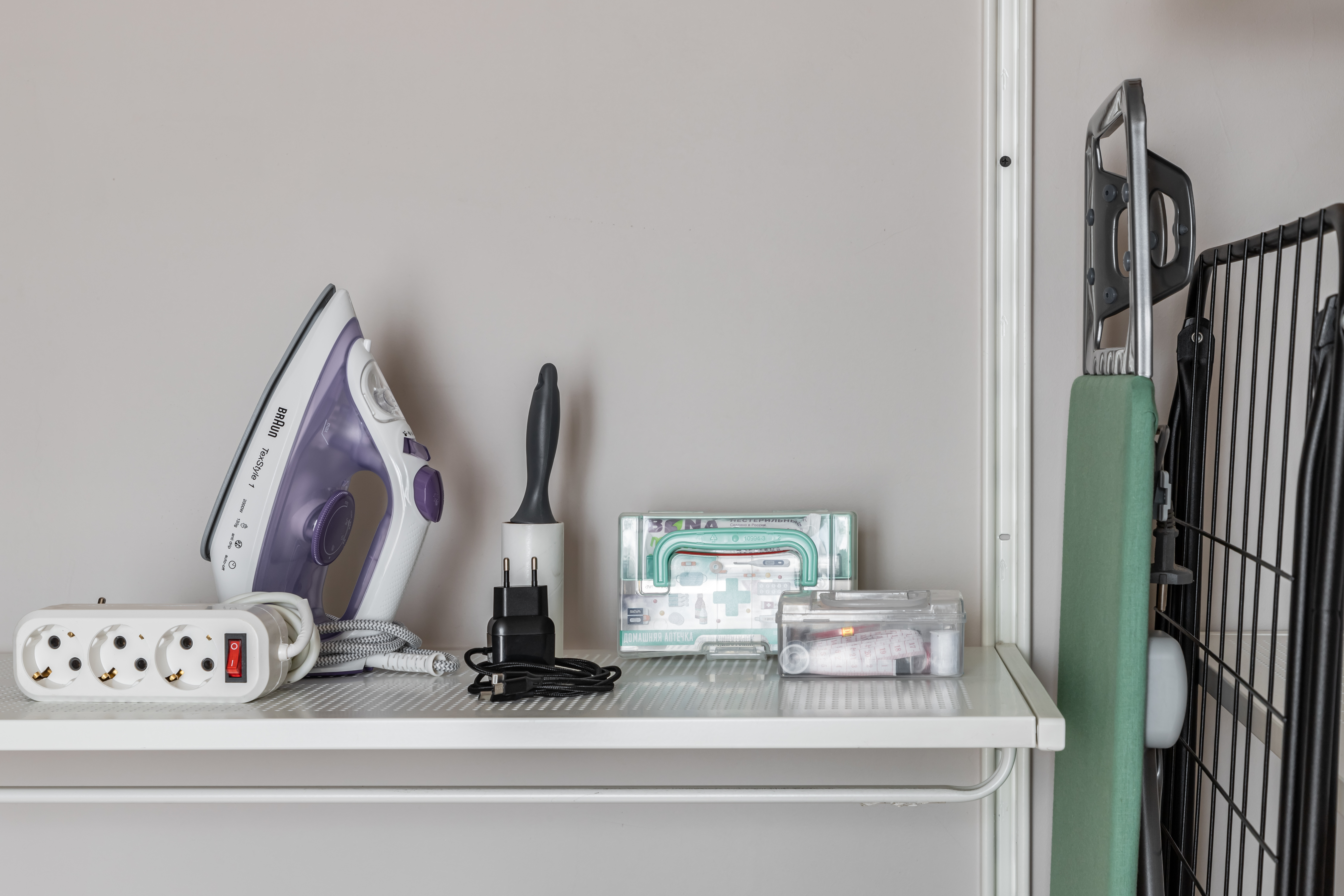 - гардеробная зона, где есть все для вашего идеального внешнего вида (гладильная доска, утюг, вешалки и полки).