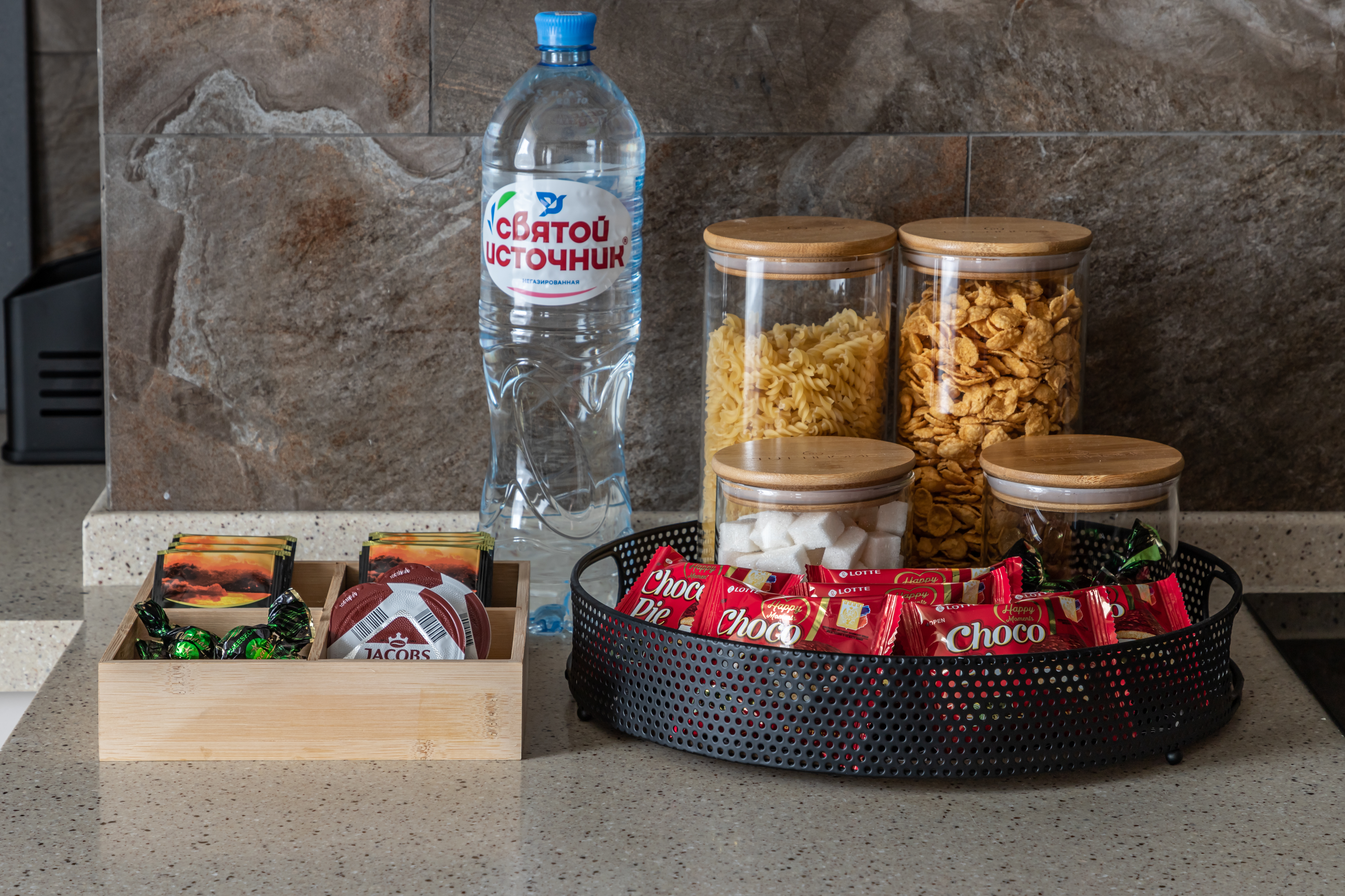 - приветственный набор продуктов для завтрака или легкого ужина (чай, кофе, сахар, хлопья).