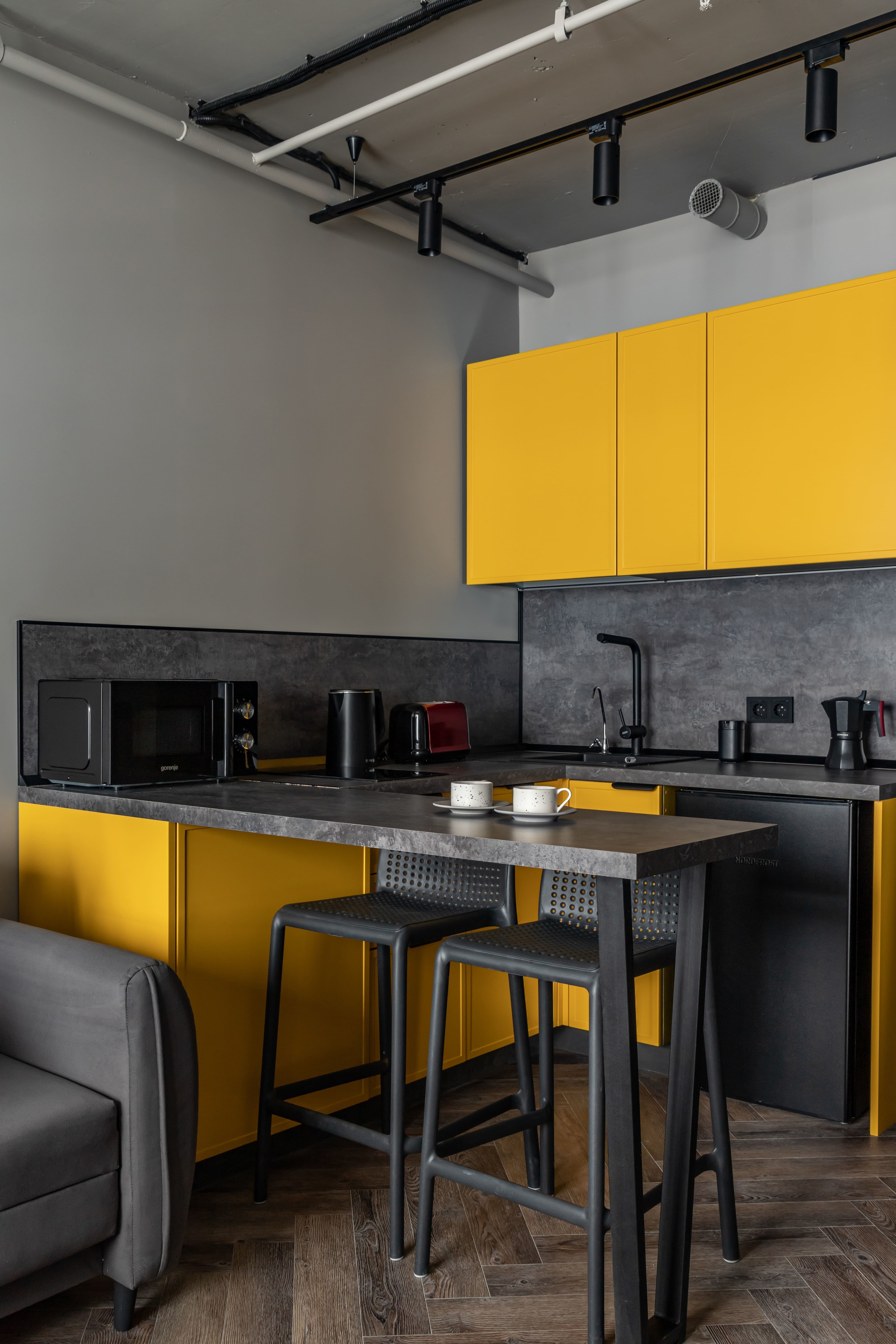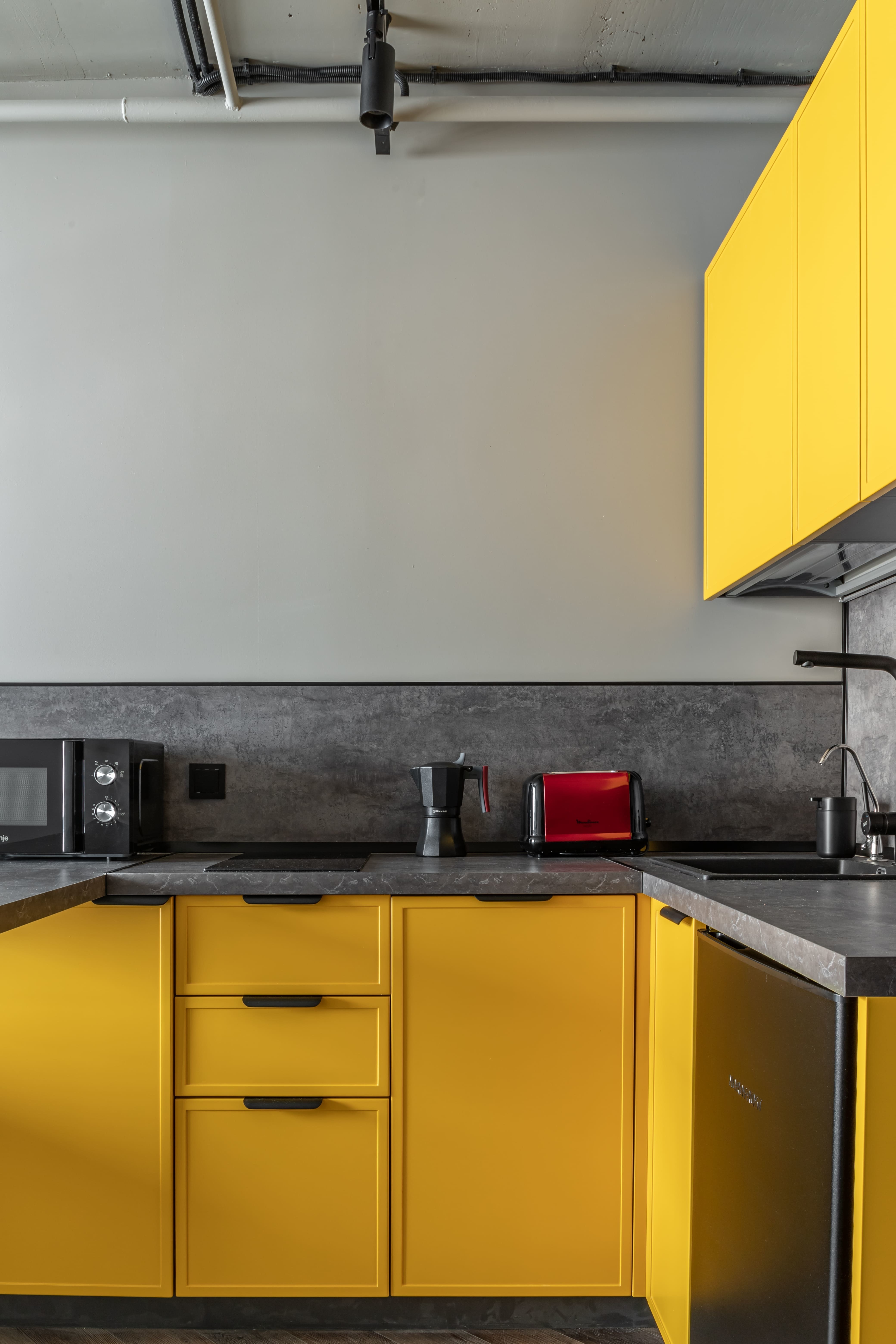 - вся необходимая бытовая техника: варочная панель, микроволновка, посудомоечная машина, холодильник, гейзерная кофеварка, чайник, стиральная машина, кондиционер,