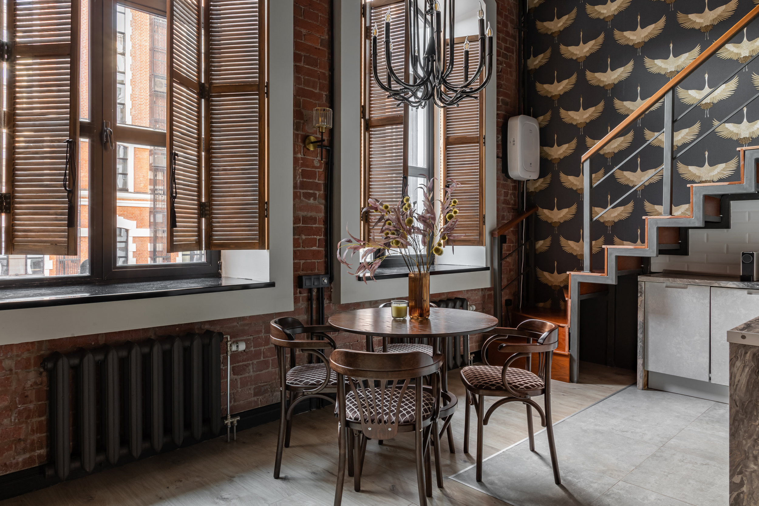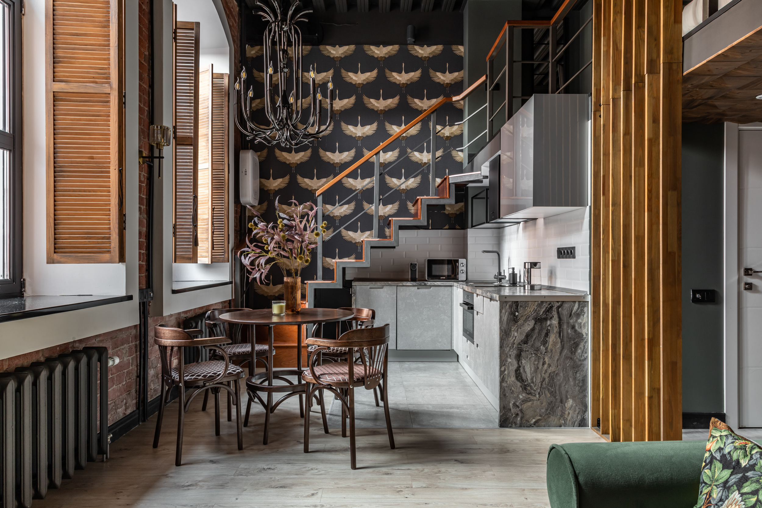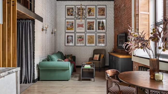 Дизайнерский ремонт, историческая кирпичная кладка начала 20 века, пятиметровые потолки.