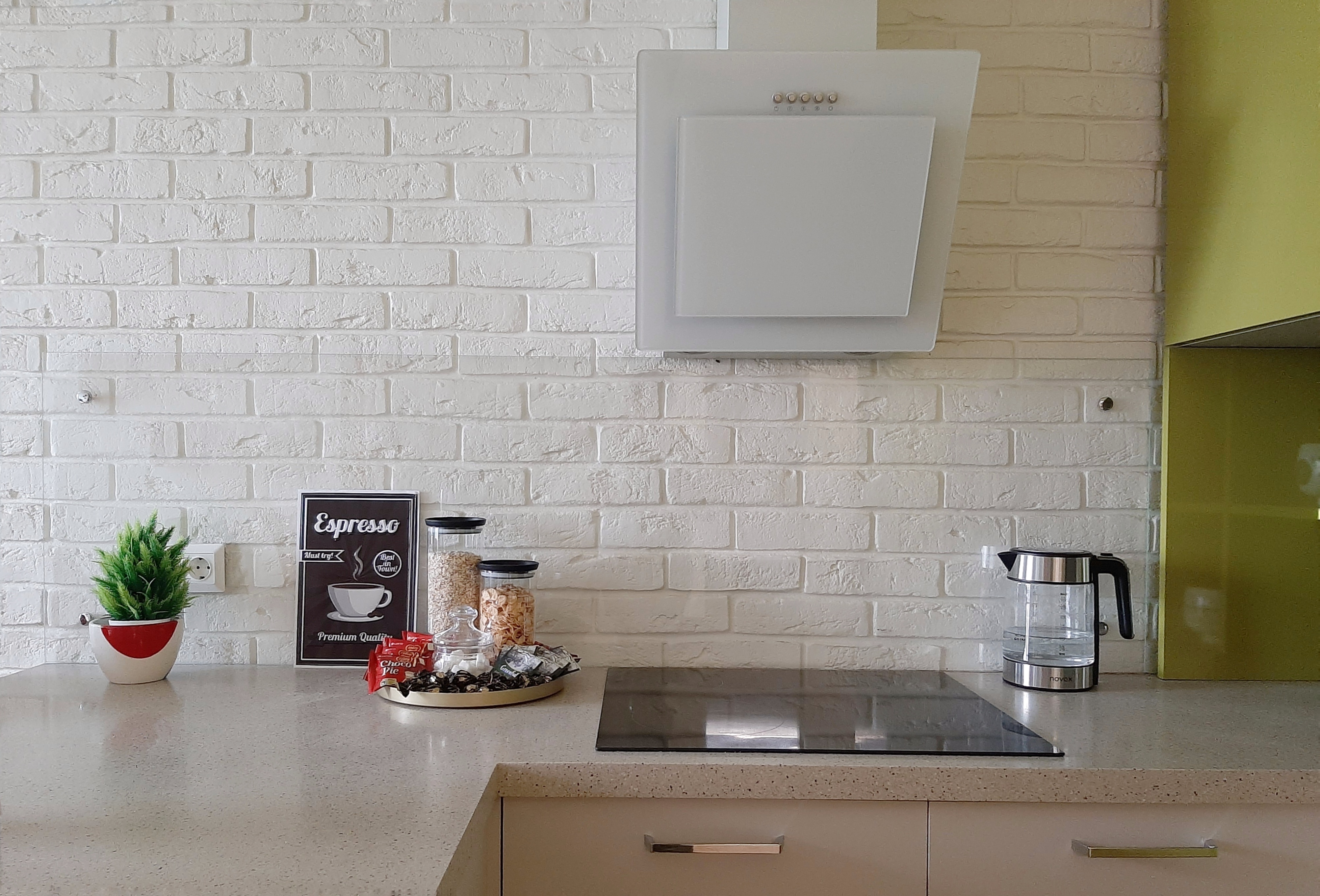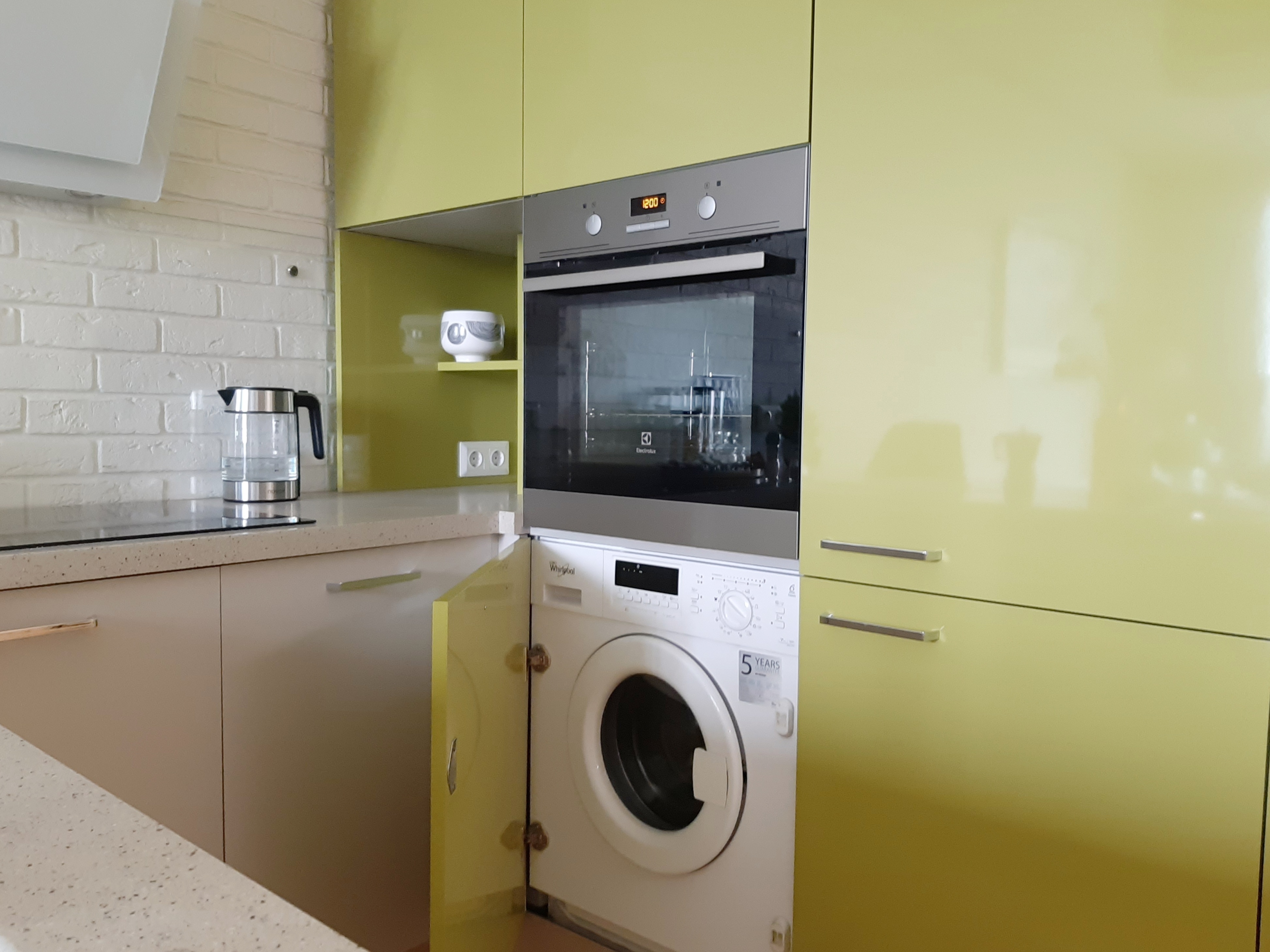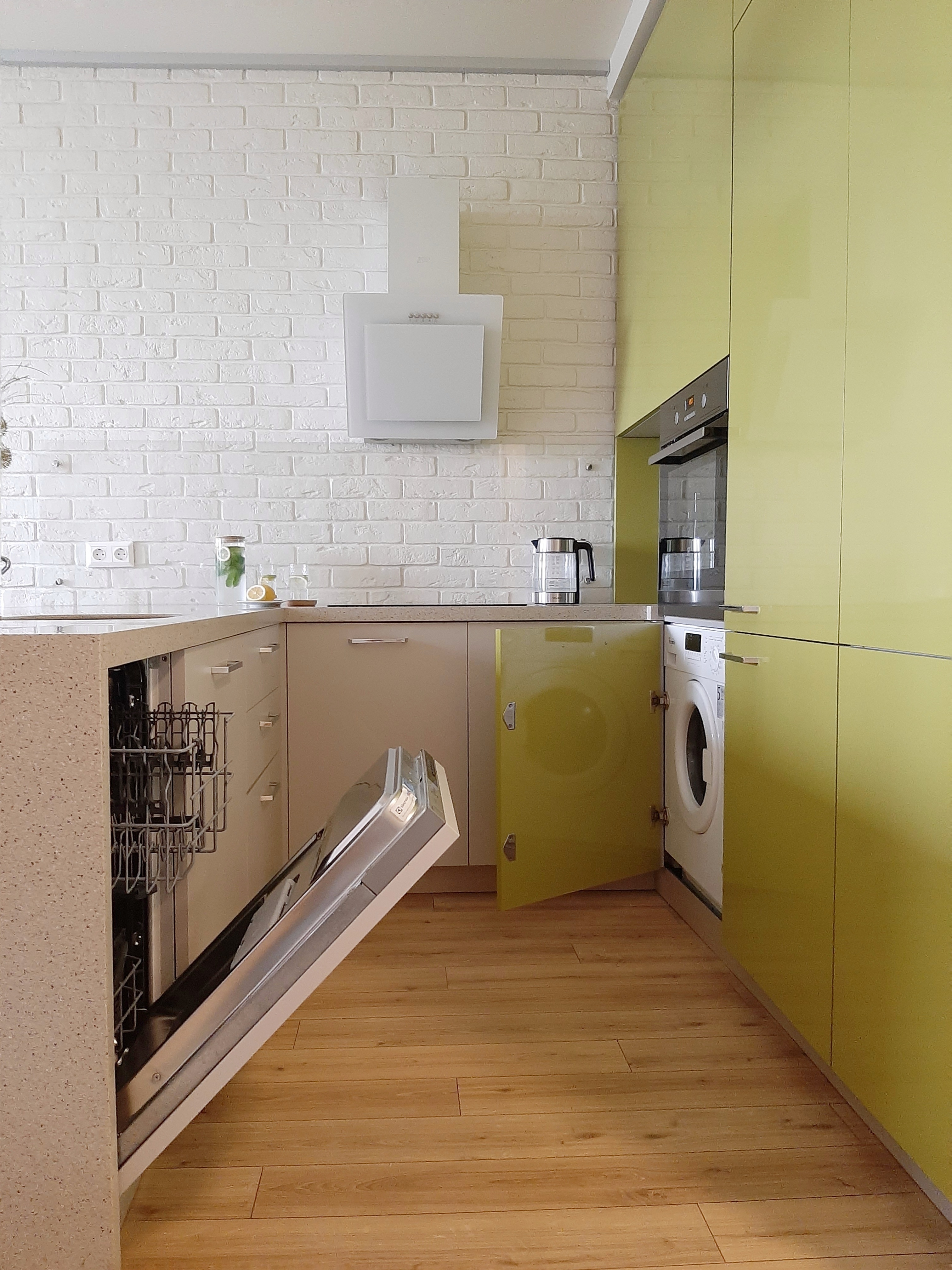 - вся необходимая бытовая техника, в т. ч. варочная панель, духовка, большой холодильник, посудомоечная машина, микроволновка, гейзерная кофеварка,