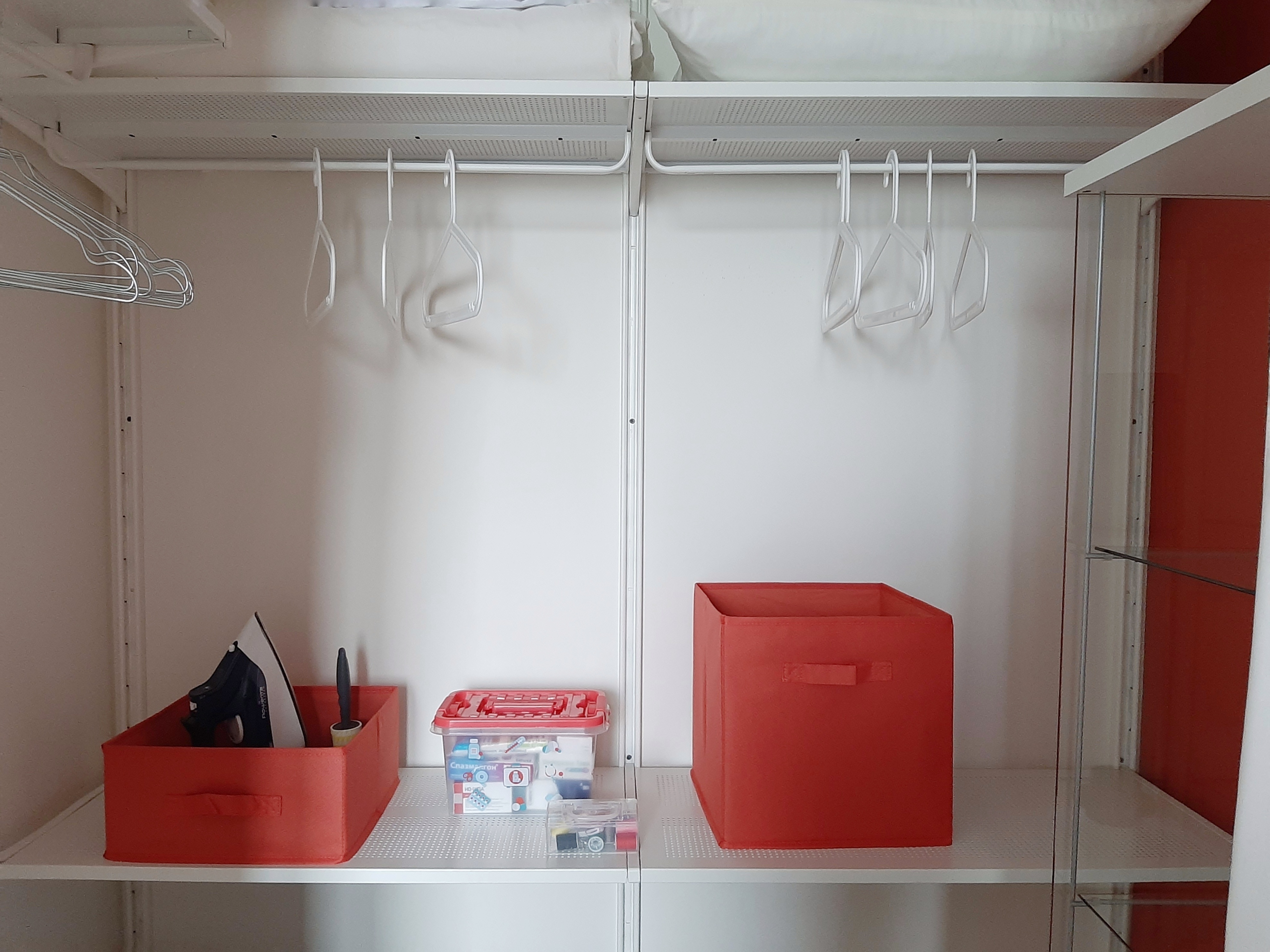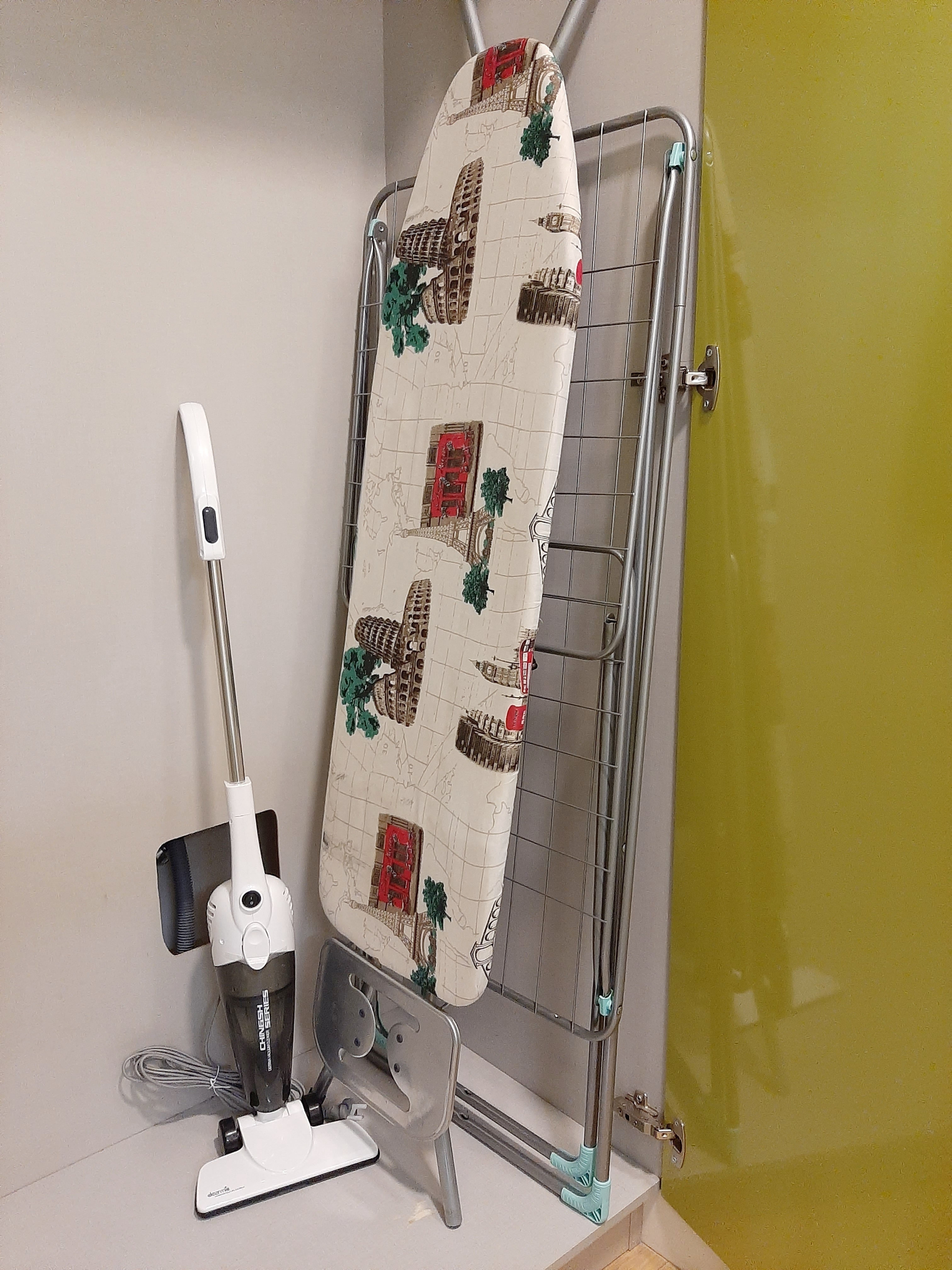 - гардеробная зона, где есть все для вашего идеального внешнего вида (гладильная доска, утюг, вешалки и полки).