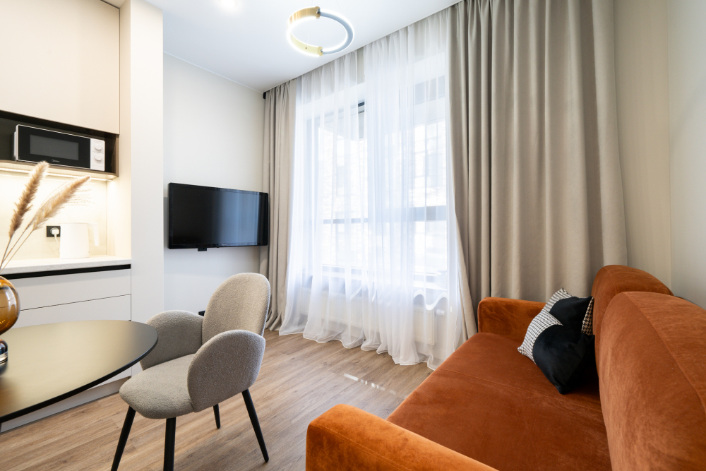 Апартаменты прекрасно подходят для проживания во время рабочих поездок, для романтических встреч, а также удобны для размещения семьей.